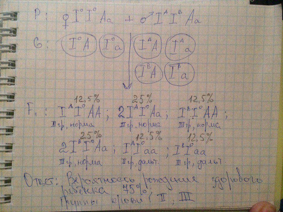 Вероятность рождения здорового ребенка 75%; Группы крови: 2, 3