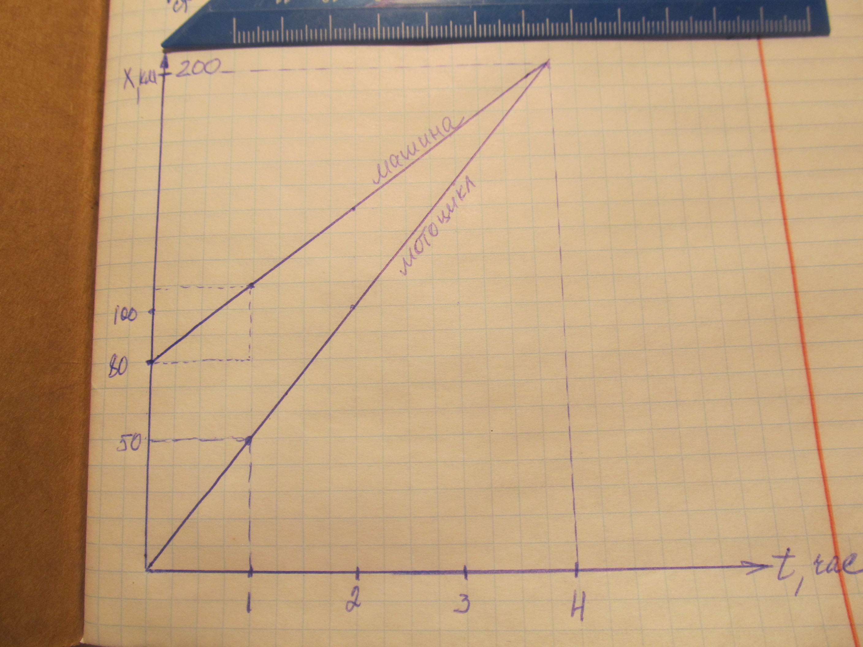 2) 80:20=4ч - через 4 часа мотоц. догонит машину.