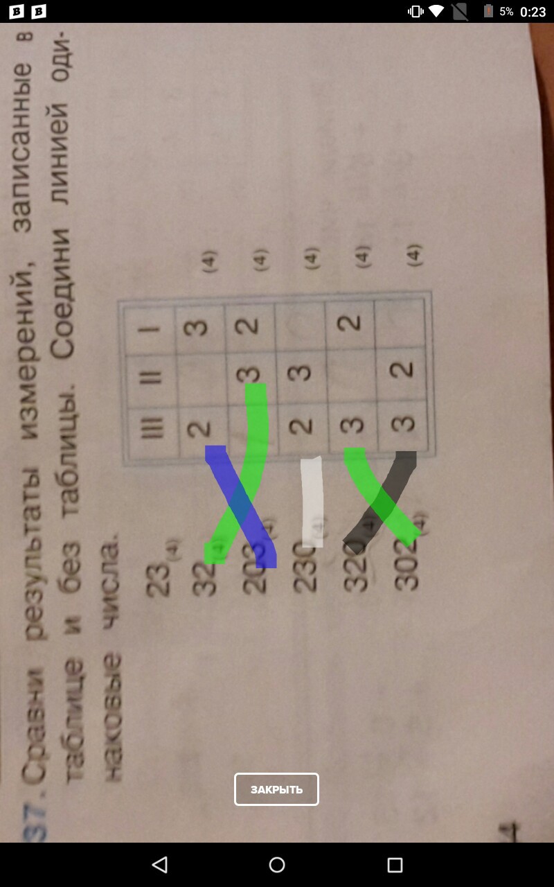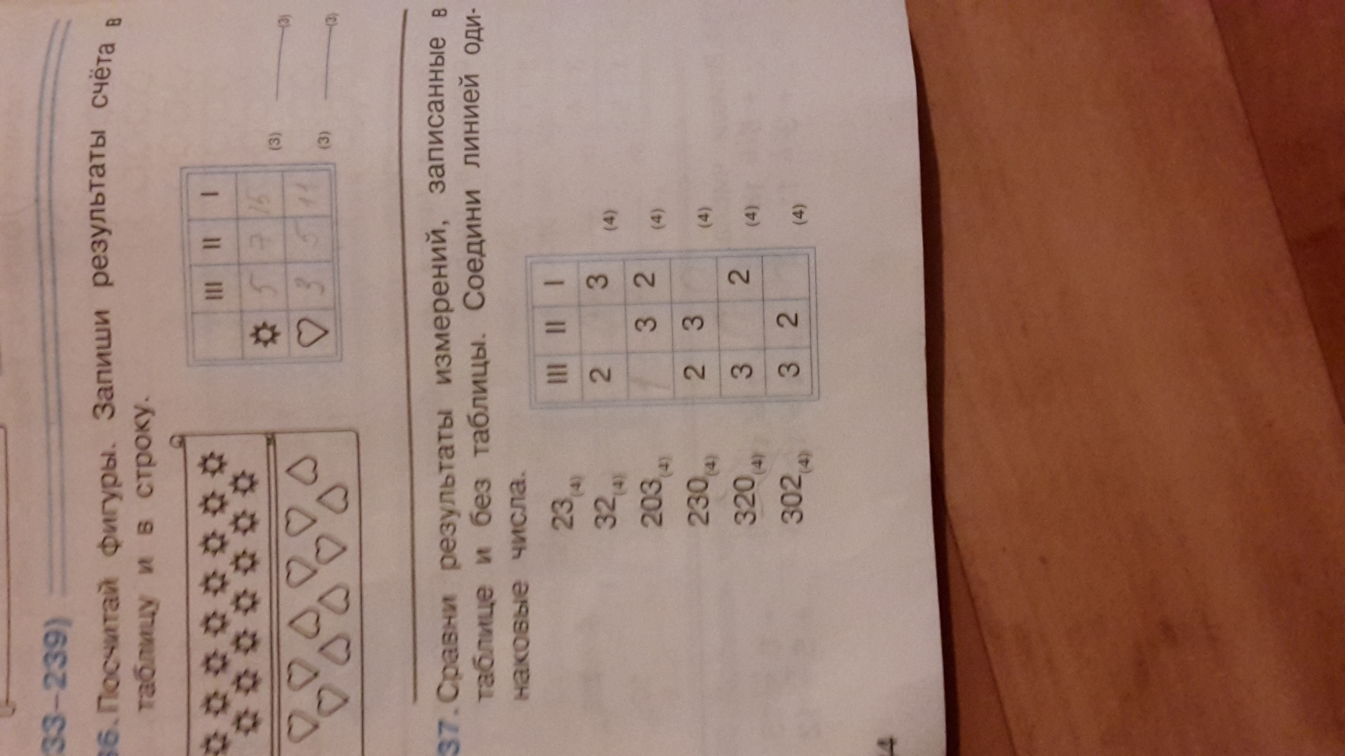 сравни результаты измерений, записанные в таблице и без таблицы. соедини линией одинаковые числп