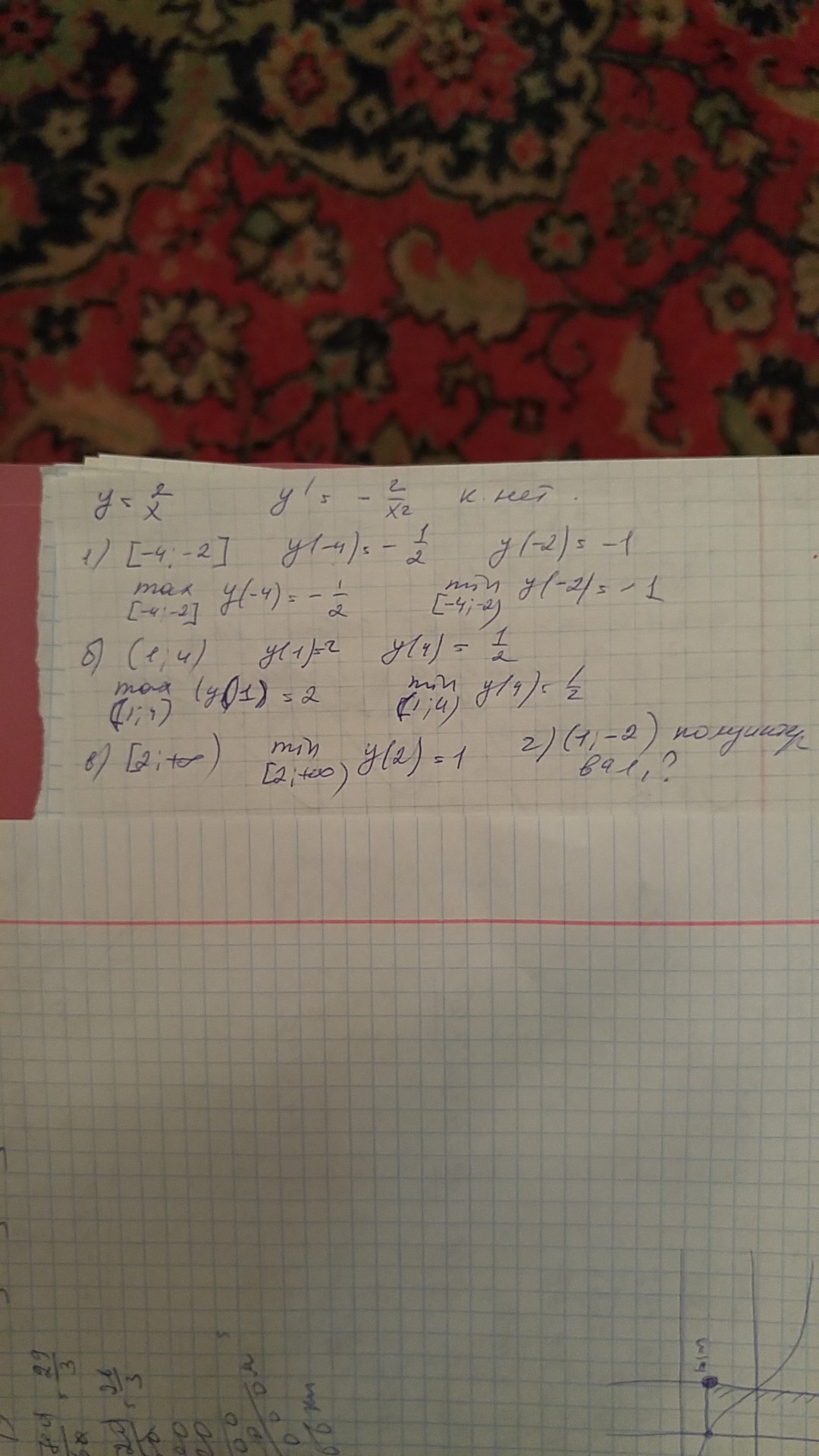 Найдите наибольшее и наименьшее значение функции y=2/x