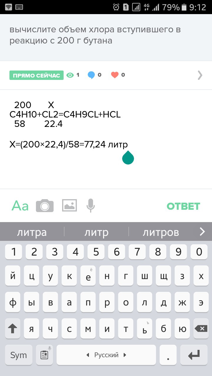 С4Н10+СL2=C4H9CL+HCL 58 22.4