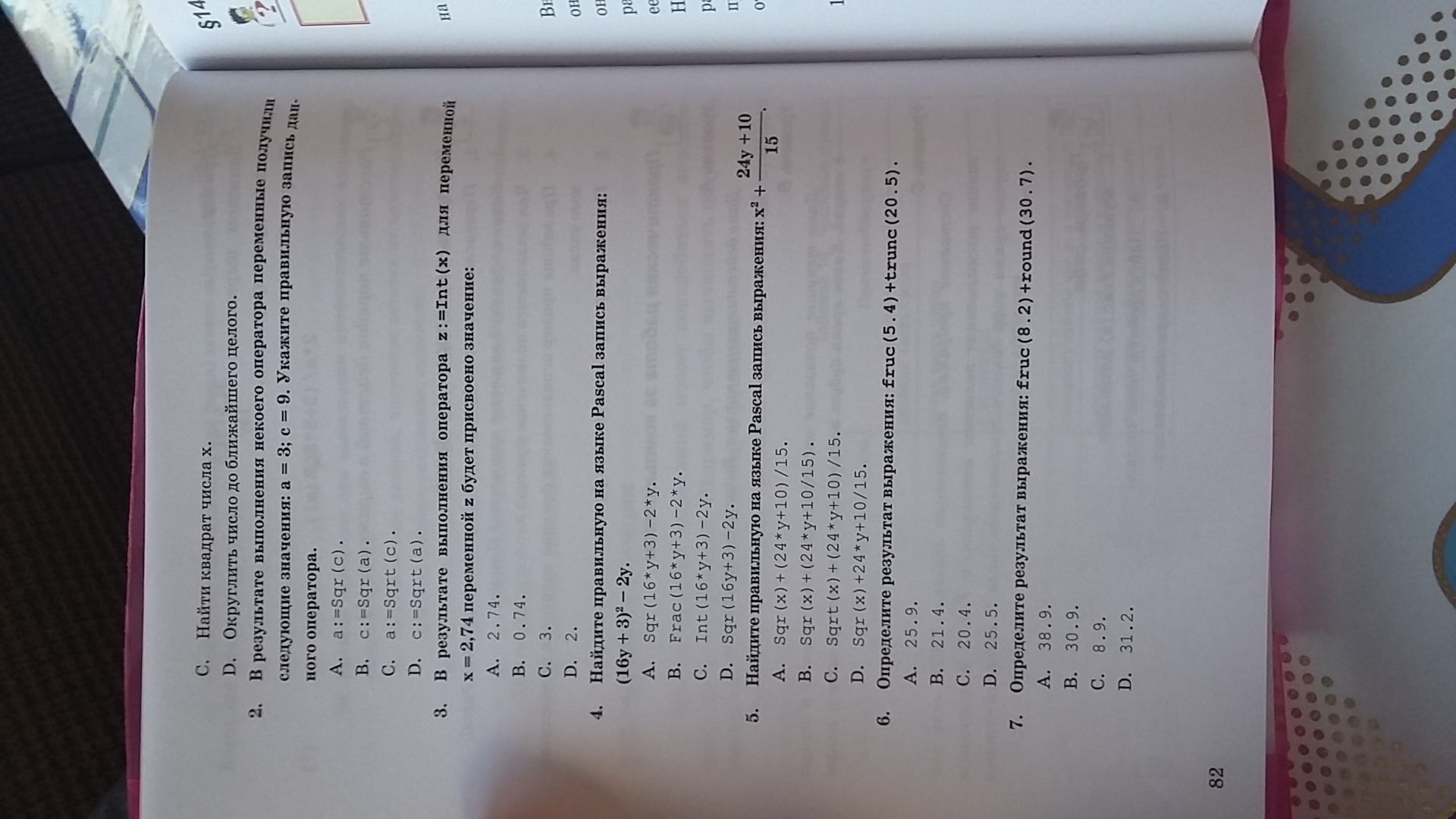 первый вопрос функция Frac (x) позволяет: А найти дробную часть числа х. В найти целую часть числа х.С найти квадрат числа х. Д округлить число до ближайшего целого.