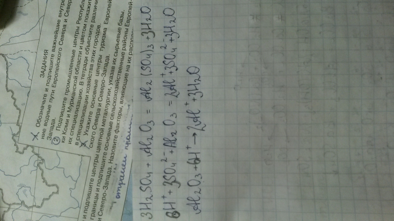 составьте уравнение реакций между серной кислотой и оксидом алюминия в молекулярной ионной и сокращённой ионной форме