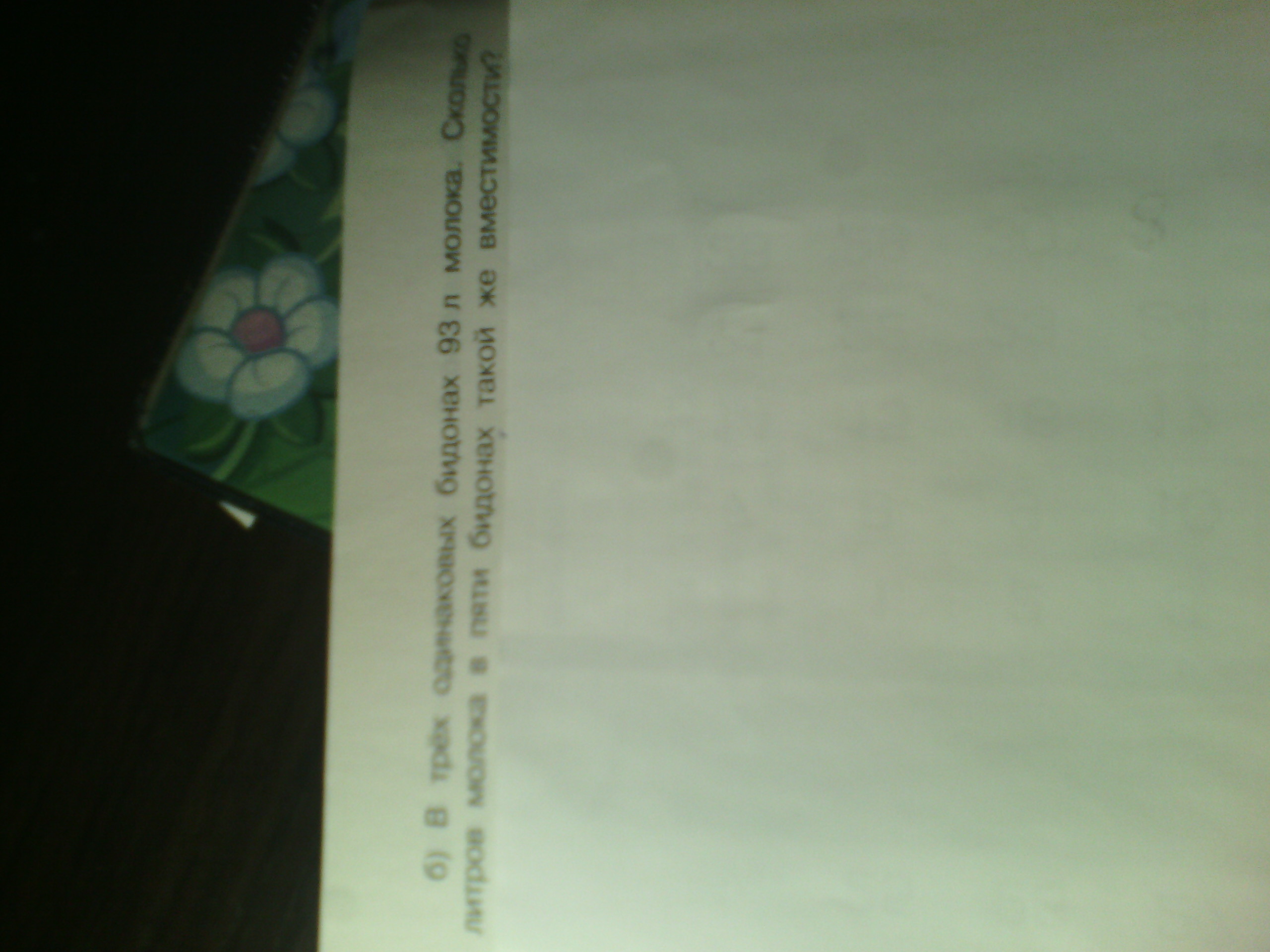 93:3=31(л)-Молока в 1 бидоне. 31*5=155(л)Молока в 5 бидонах