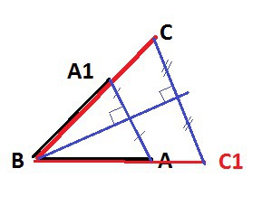 Биссектриса делит угол пополам, поэтому симметричные лучи АВ и А1В совпадают с лучами ВС и ВС1.