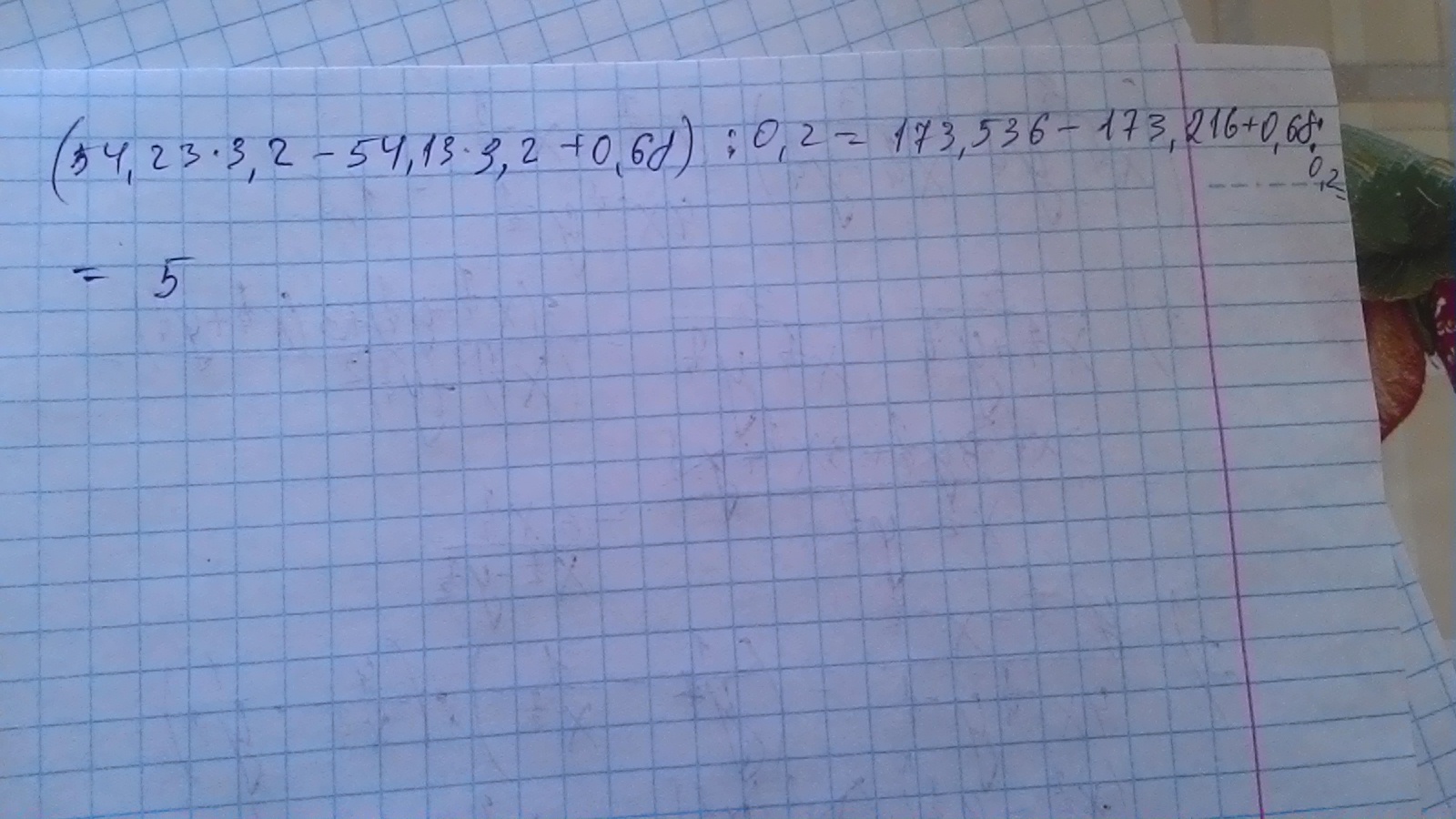 если отдельно по действиям,то сначала надо в скобках решить умножение,а потом сложить в скобках,а потом уже разделить на 0,2