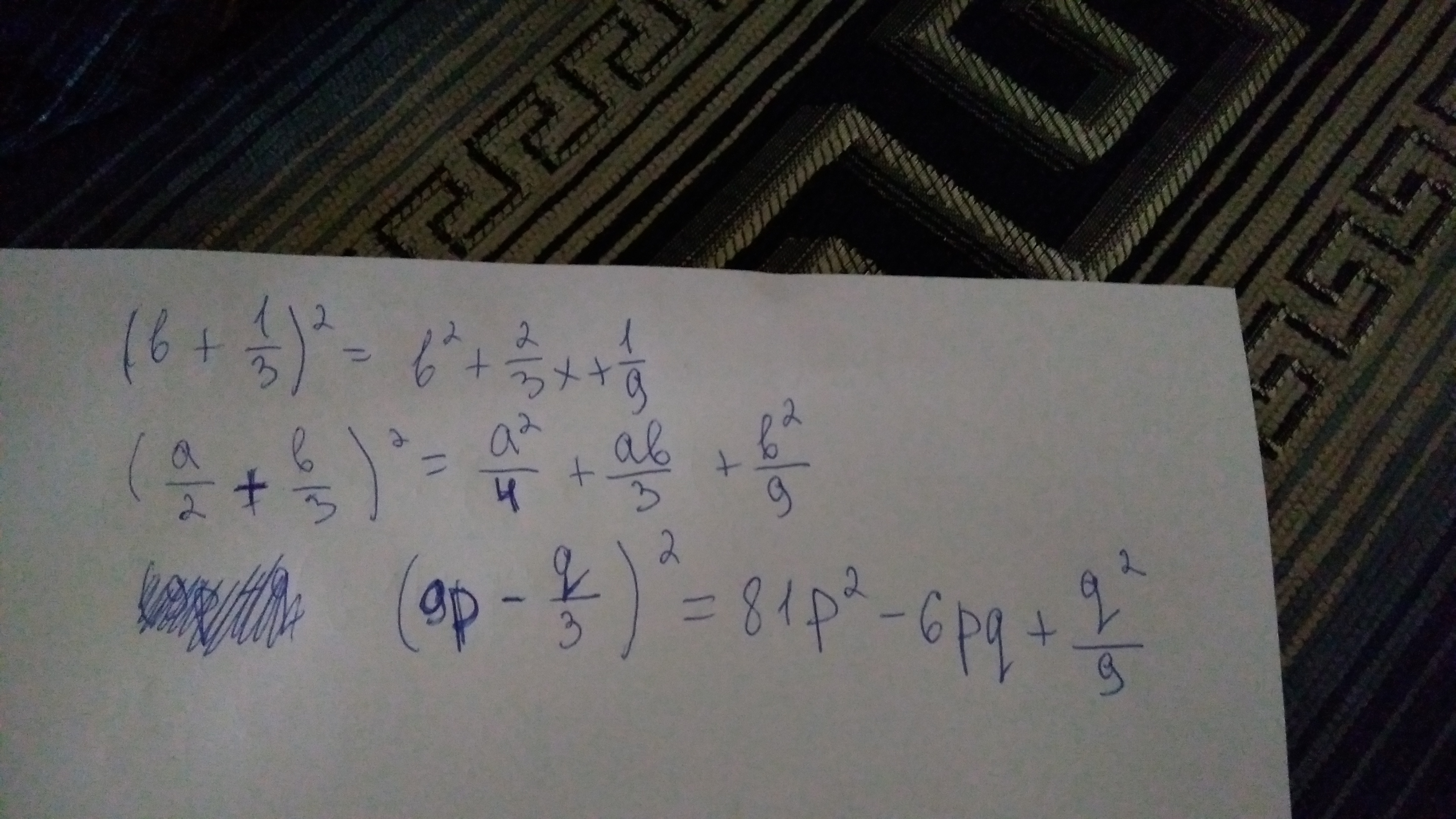 преобразуйте выражене (в+13)во 2 степени;(а2+в3)во2степени;(2 13м+1 12н)во2 степени;(9р-q3) во второй степени