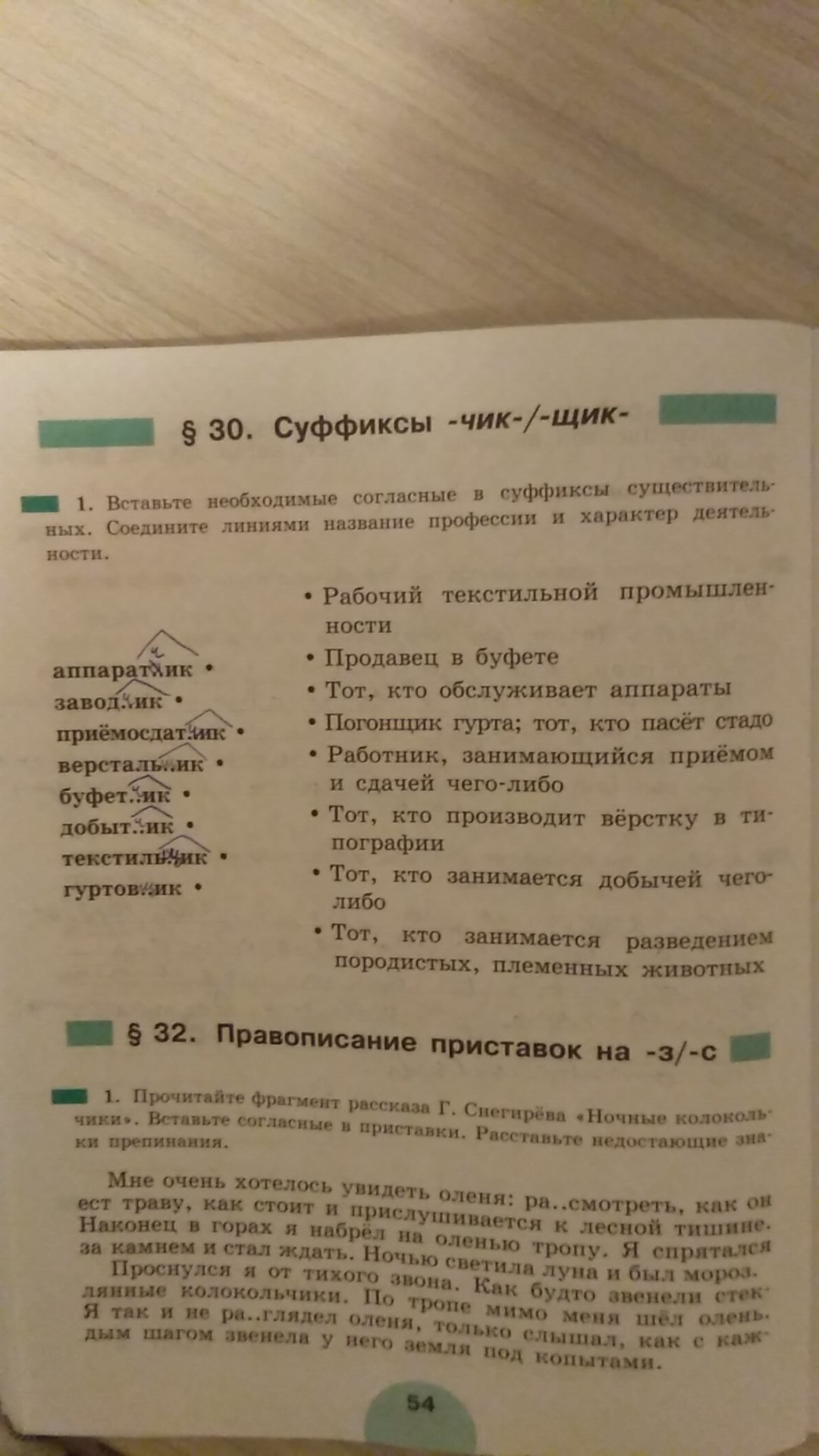 Вставьте необходимые согласные в суффиксе существительных соедините линией название профессии и характер деятельности.помогите пожалуйста!