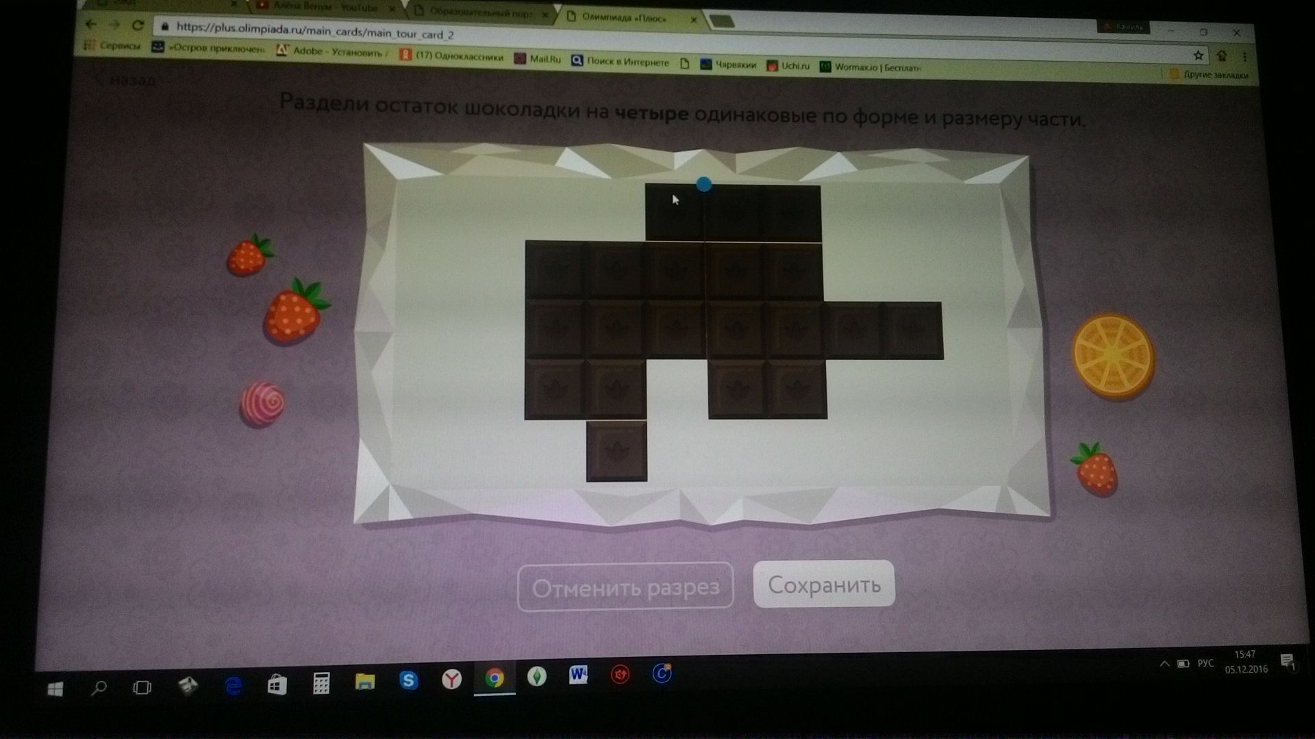 нужно разделить по 5 долек.