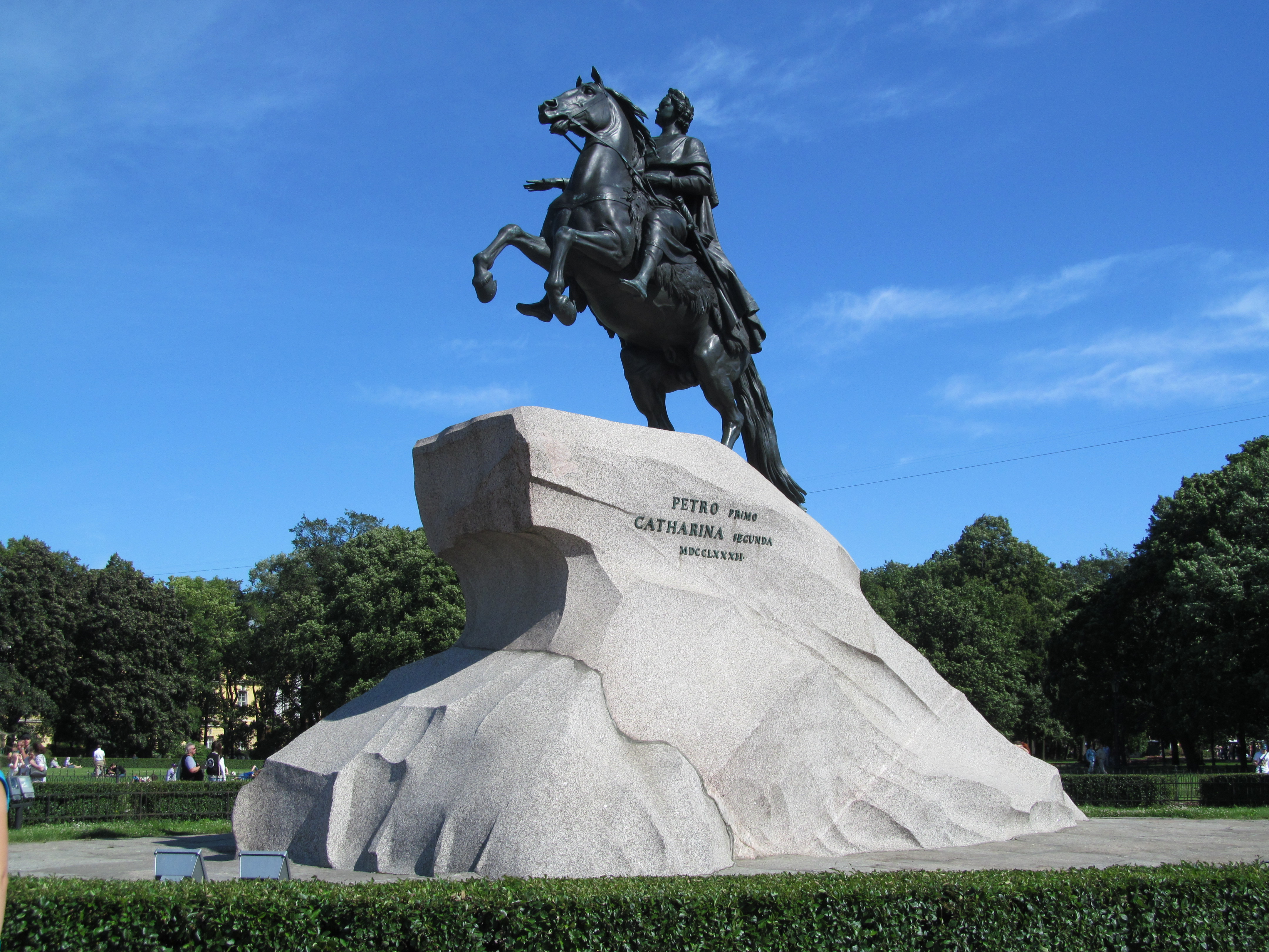 На самом деле этот памятник на Сенатской площади Санкт-Петербурга вовсе не медный, а бронзовый. Второе, более популярное название, пристало к нему позднее, после поэмы А. С. Пушкина «Медный всадник». Автор проекта, французский скульптор Этьен-Морис Фальконе, в свое время отстоял натиск всех противников своей идеи, включая императрицу Екатерину II. Из-за разногласий и сложностей в отливке, беспрецедентному для тех времен предприятию, работа над памятником продолжалась целых 16 лет. В итоге конная статуя первого российского императора, стоящая на огромной глыбе гранита, была торжественно установлена 7 августа 1782 г. (по старому стилю). Сегодня, как и двести с лишним лет назад, «Медный всадник» является одним из главных символов Северной столицы.