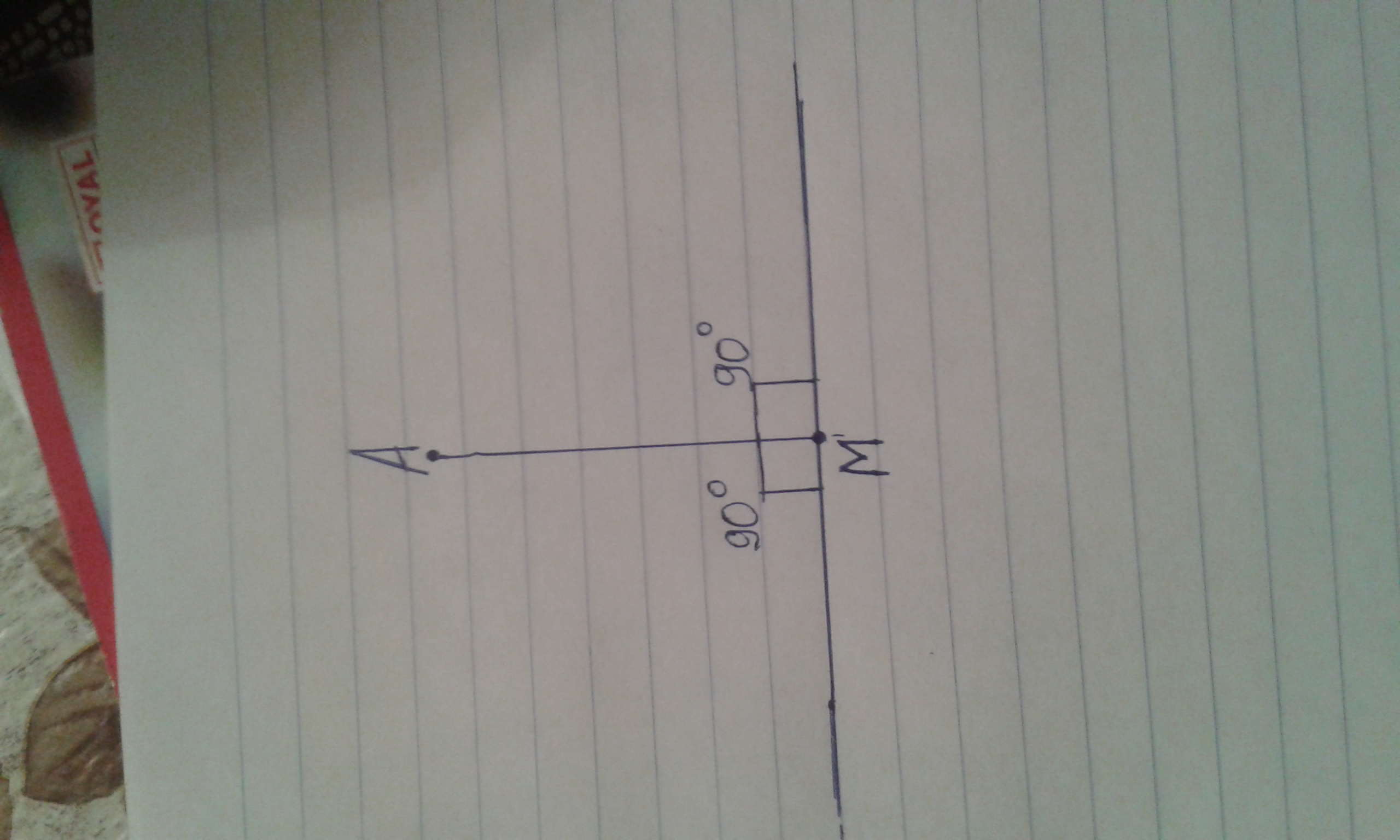построй два прямых угла с вершиной в точке А так, чтобы одна сторона каждого угла совпадала со строной АМ
