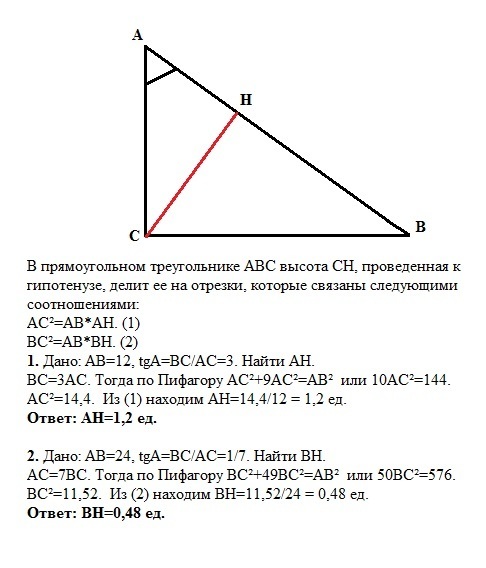 ВС²=11,52. Из (2) находим ВН=11,52/24 = 0,48 ед.
