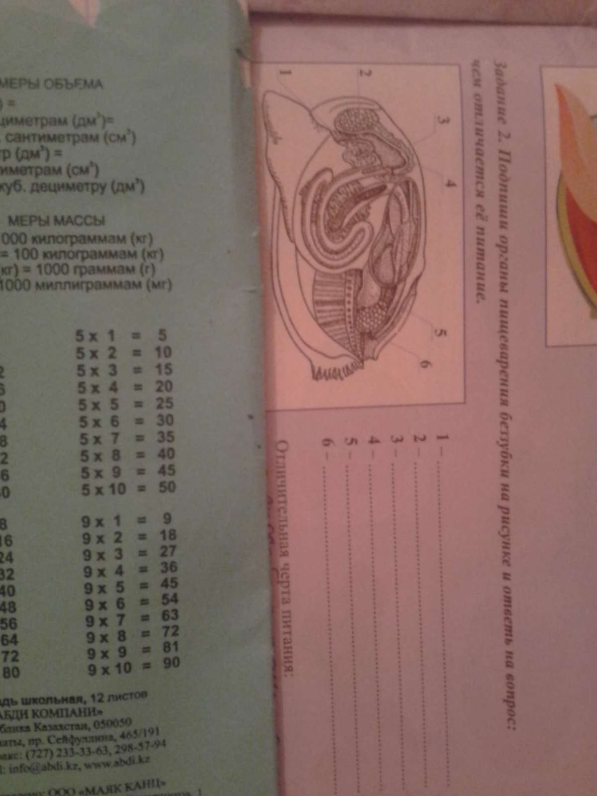 1ротовое отверстие 2пещивод 3желудок 4прямая кишка 5анальное отверстие