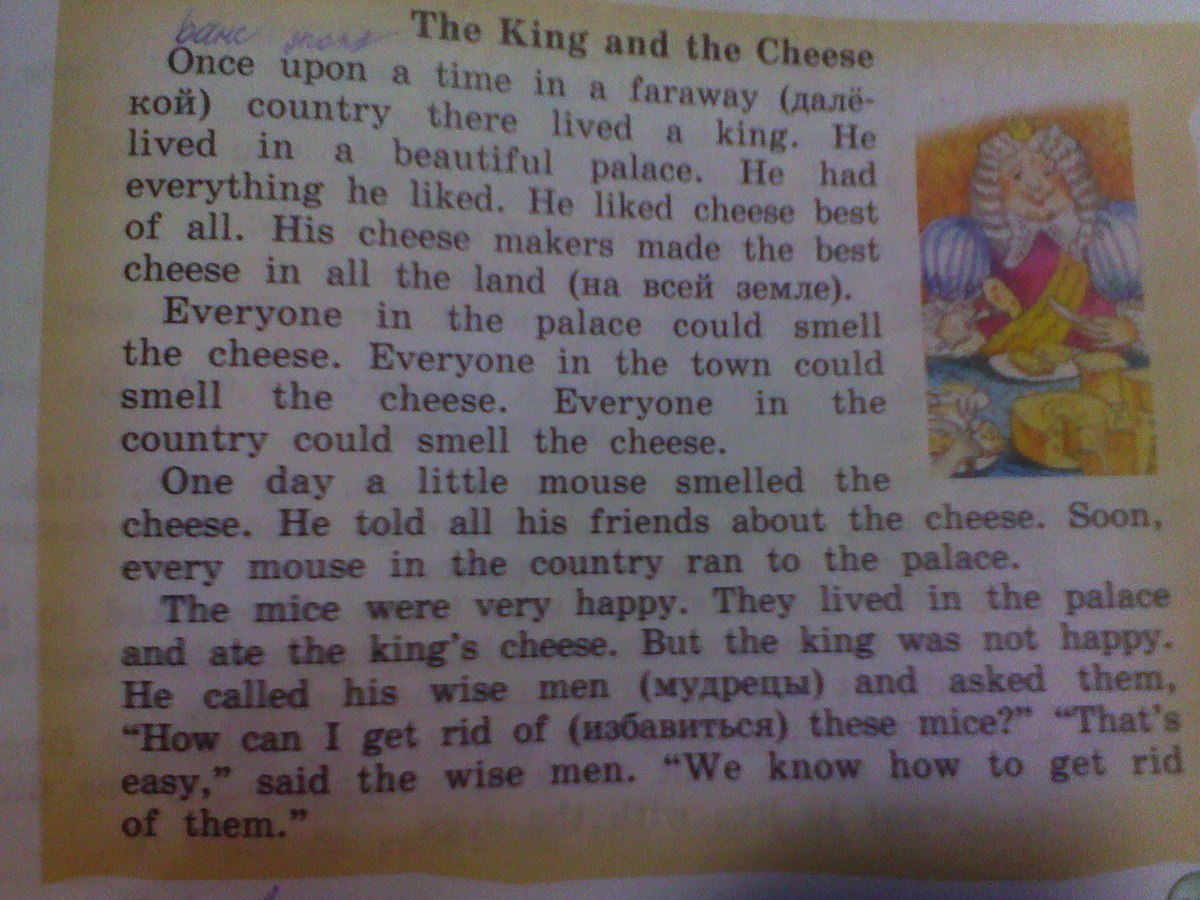 Расставьте цифры правильном порядке : 1)the mice lived in the palace and ate the kings cheese. everyone in the country could smell that cheese. 2)The king called his wise men to help him. 3)"Thats easy " the wise men answered . 4)He lived in a beautiful palace and he liked cheese. 5)Once upon a time there lived a king. 6)He asked " How can i get rid of these mice?