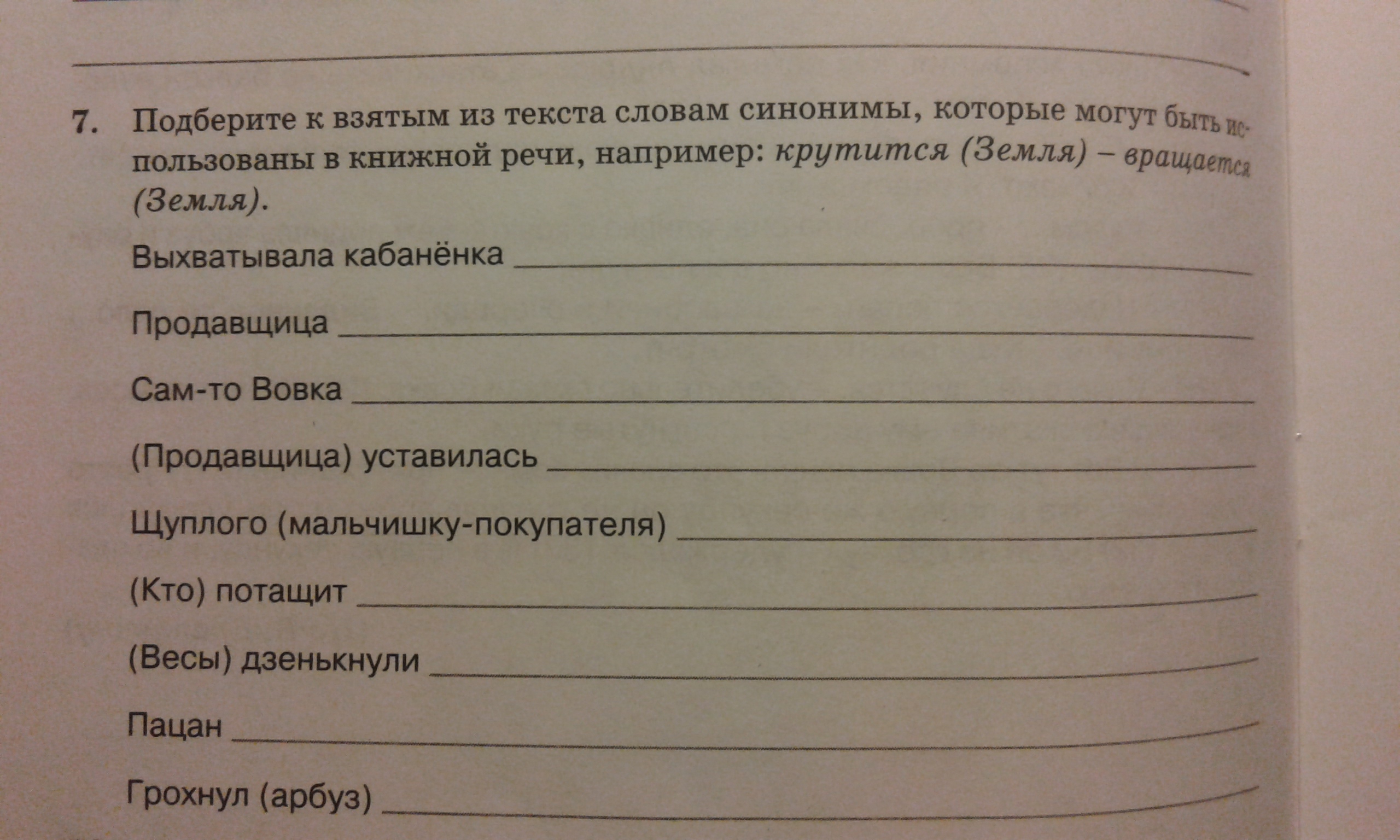 1.кабаненка выхватавала .2.добрая продавщица.3.вовка сам то4.устанавилась продавщица.мальчишку покупателя щуплого.5.потащит кто.6.дзекнули весы.7. незнаю.8.грохнуллся арбуз.
