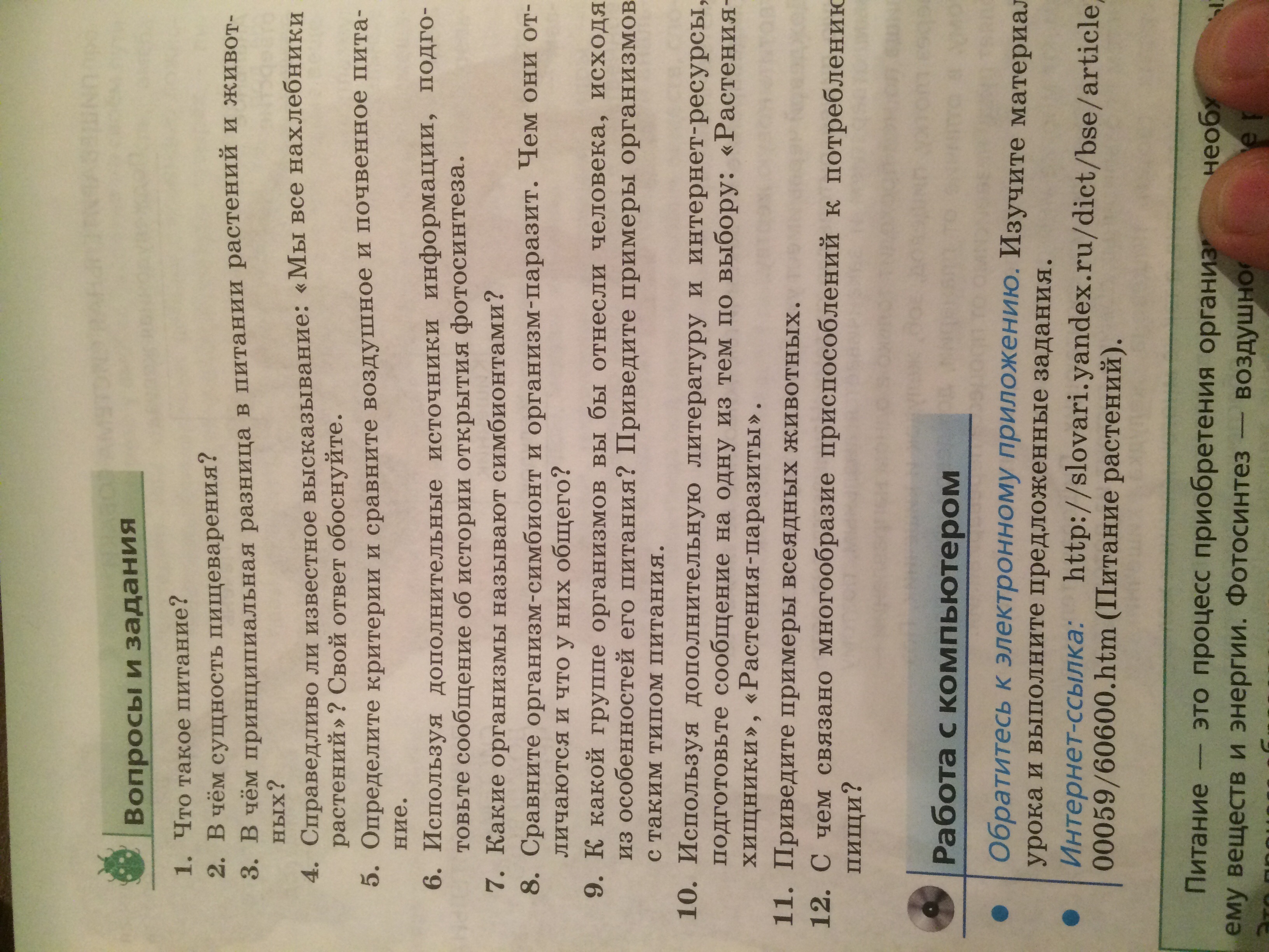 5 почвенное питание- это получение воды и минеральных солей из почвы. Воздушное питание- это получение углекислого газа воздуха для процесса фотосинтеза.