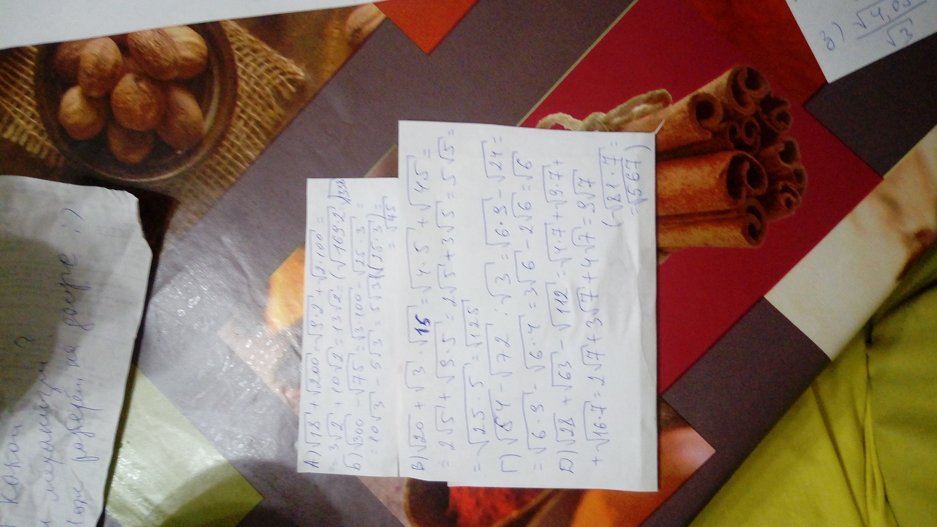 А)√18 + √200 Б) √300 - √75 В)√20 + √3 *√15 г)√54 - √72 : √ 3