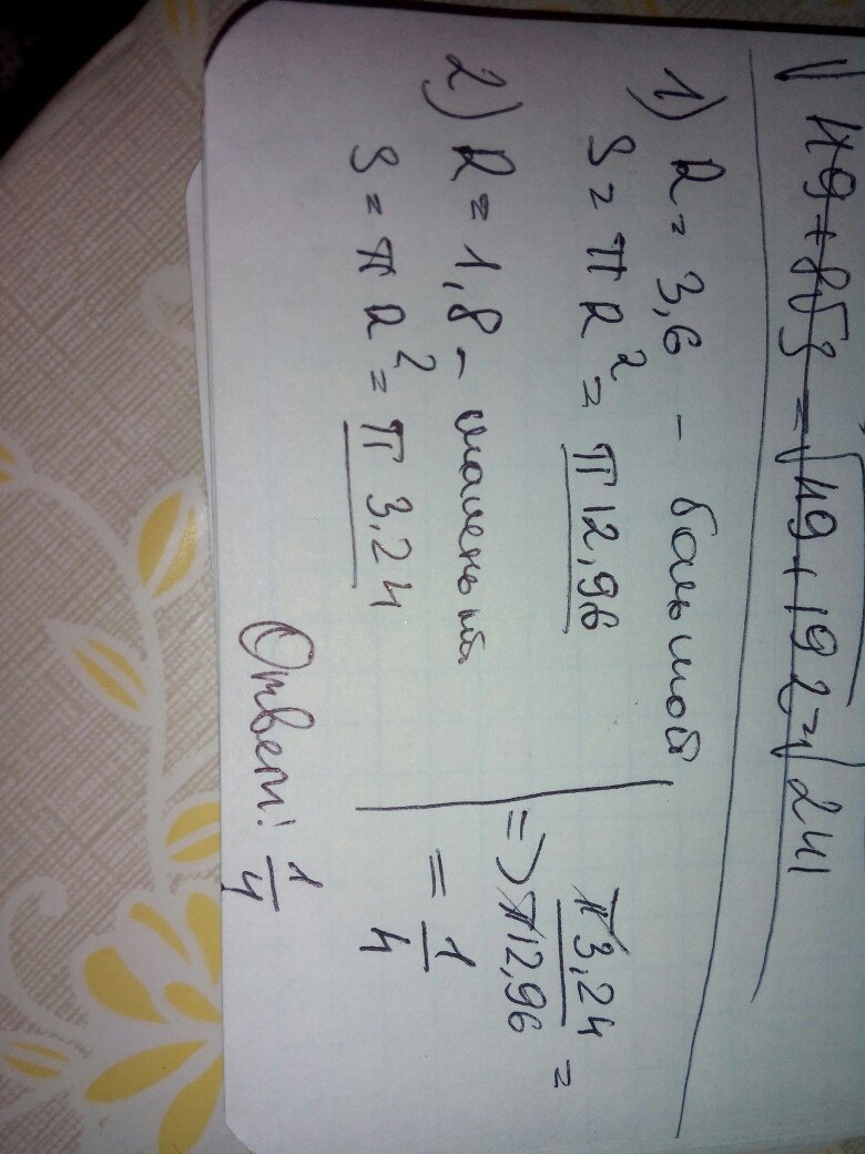 радиус круга 3,6 сантиметров Найди площадь круга радиус которого в 2 раза меньше В каком отношении находятся площадь меньшего Круга к площади большого?