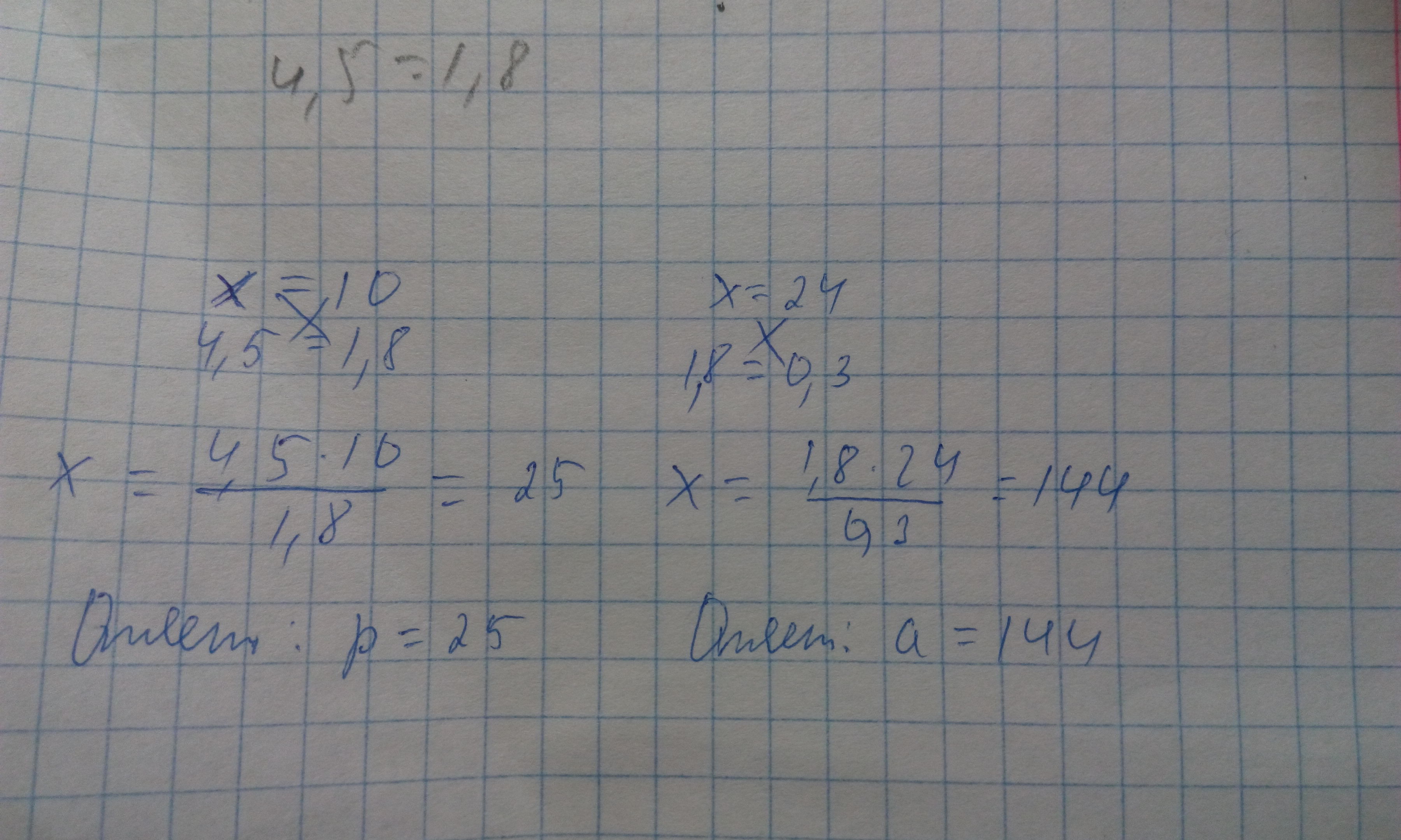 Поскольку отношение 4.5/1.8 = 2,5, тогда P = 2.5 * 10, то же самое и для второго случая