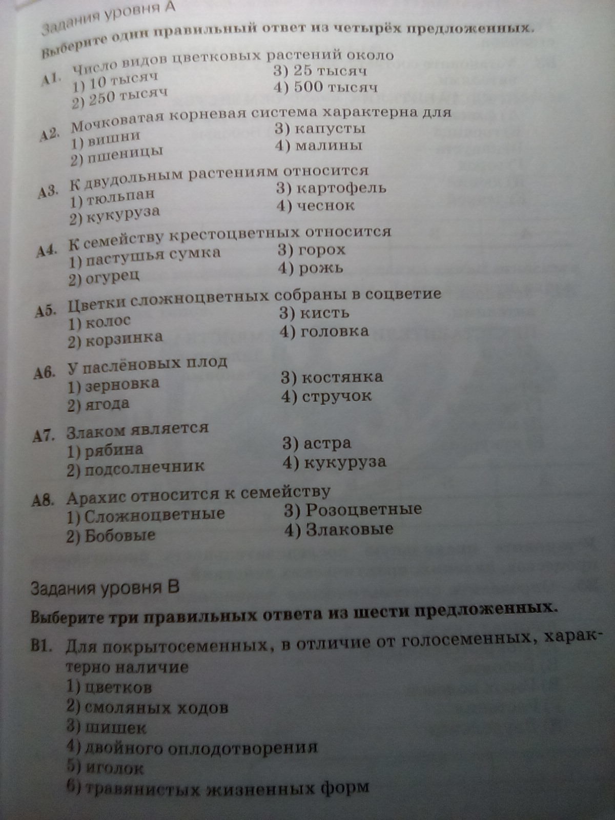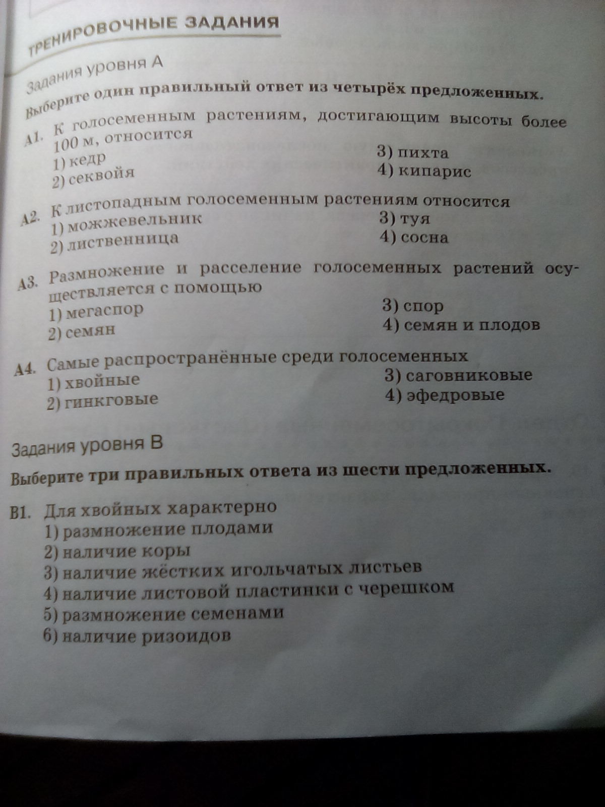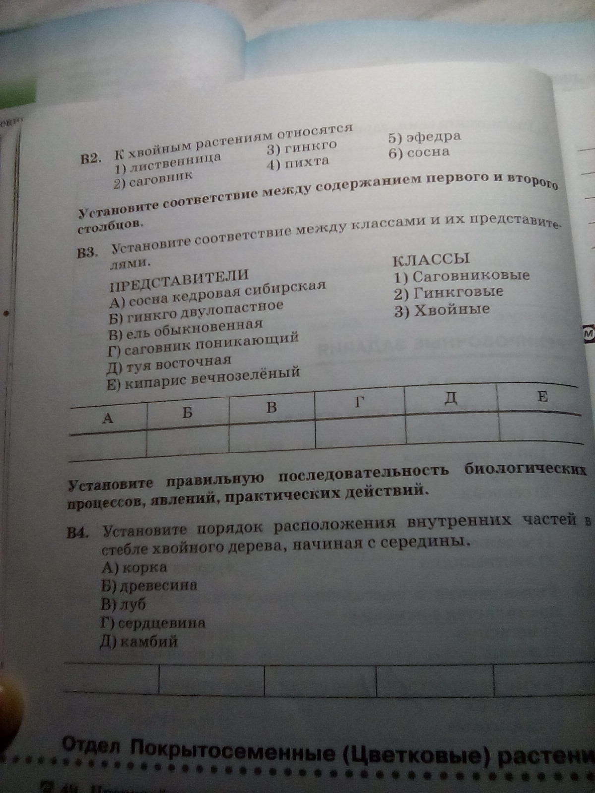 Помогите пожалуйста срочно надо ответы по биологии 7 класс. Тесты по теме отделы голосеменных и покрытосеменных растений.