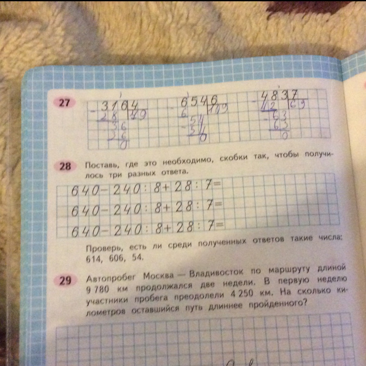 И третий способ: 640-(240:8+28:7), в скобках выполняем деление 640-(30+4), дальше 640-34=606