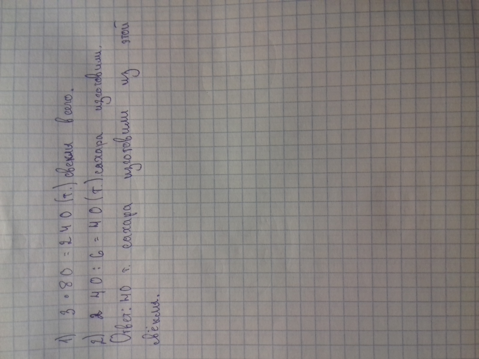 На сахарный завод привезли 80 машин свёклы,по 3 т на каждой.Сколько сахара изготовили из этой свёклы,если масса сахара составляет шестую часть массы свёклы?