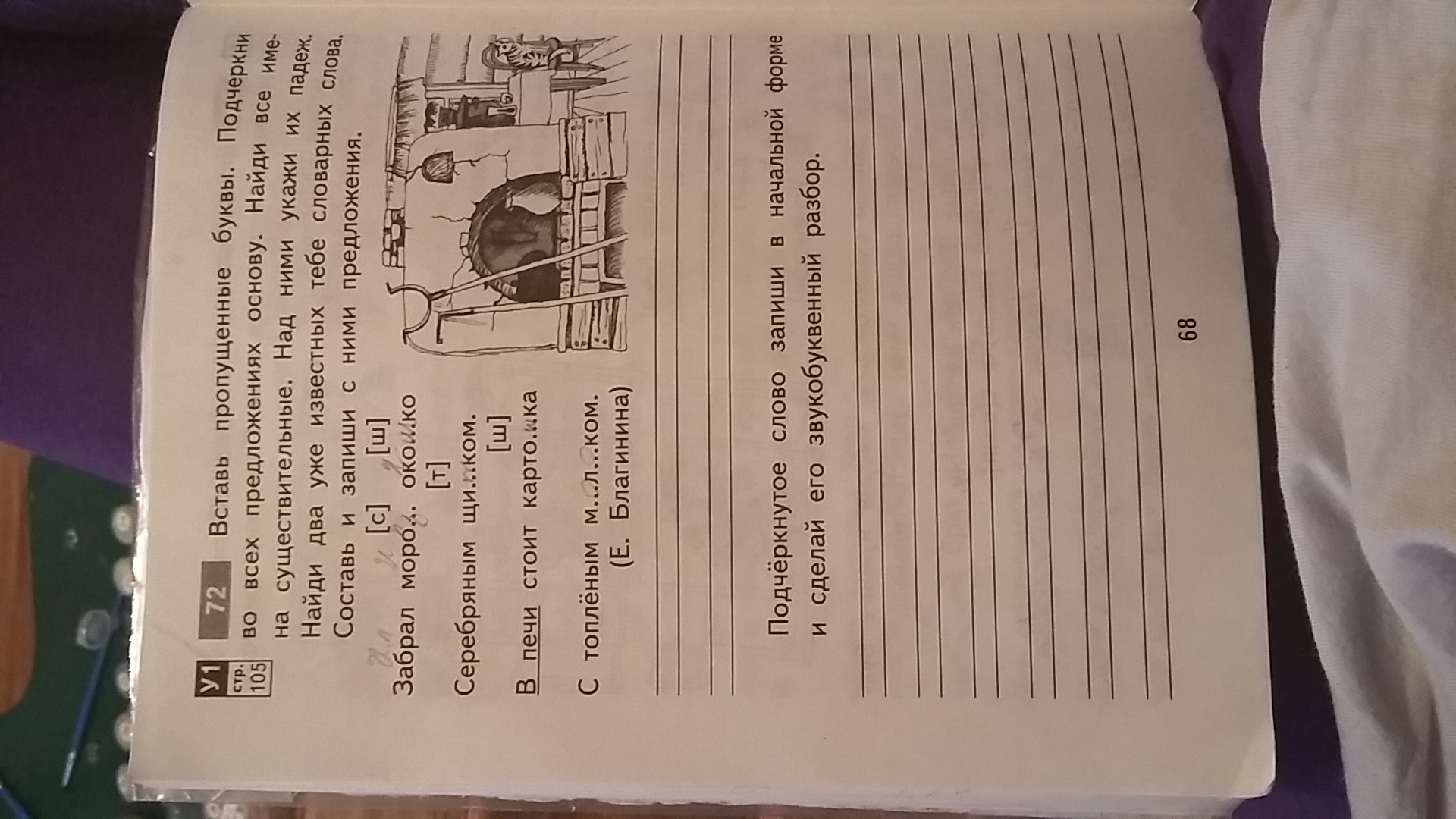 Вставь пропущеные буквы. Подчеркни во всех предложения основу.Найди все имена существительные. Над ними укажи их падеж. Найди два уже известных тебе словарных слова. Составь и запиши с ними предложения.