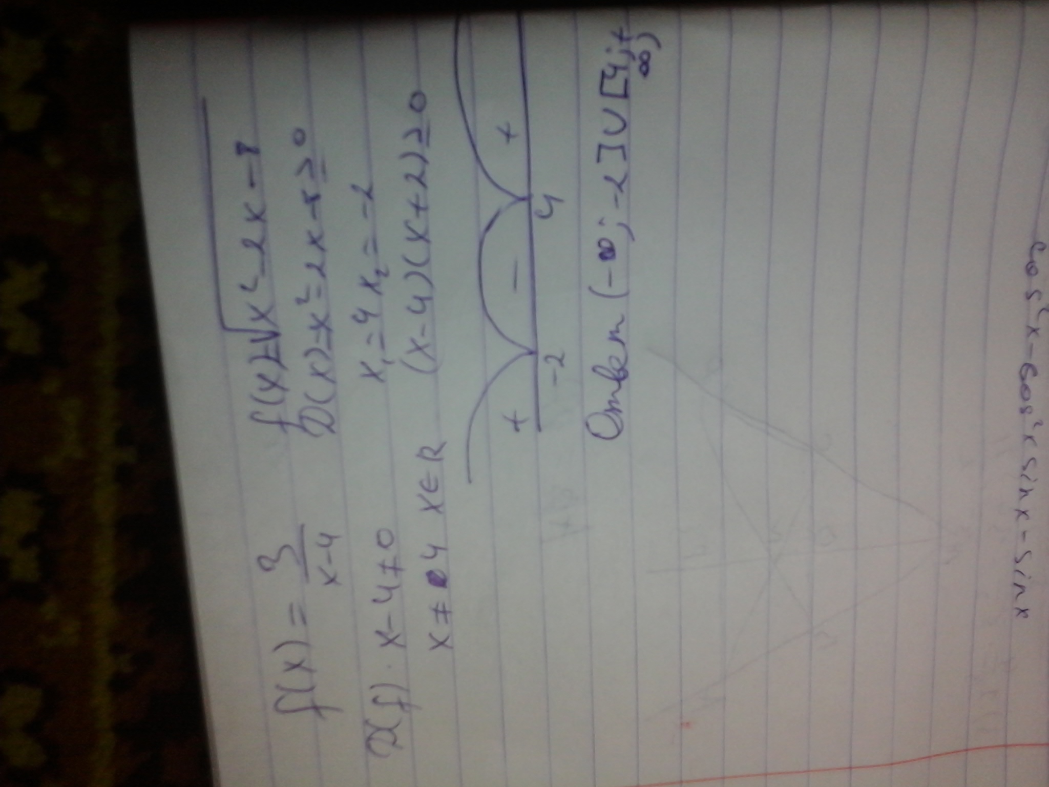 b) f(x)=√x^2-2x-8