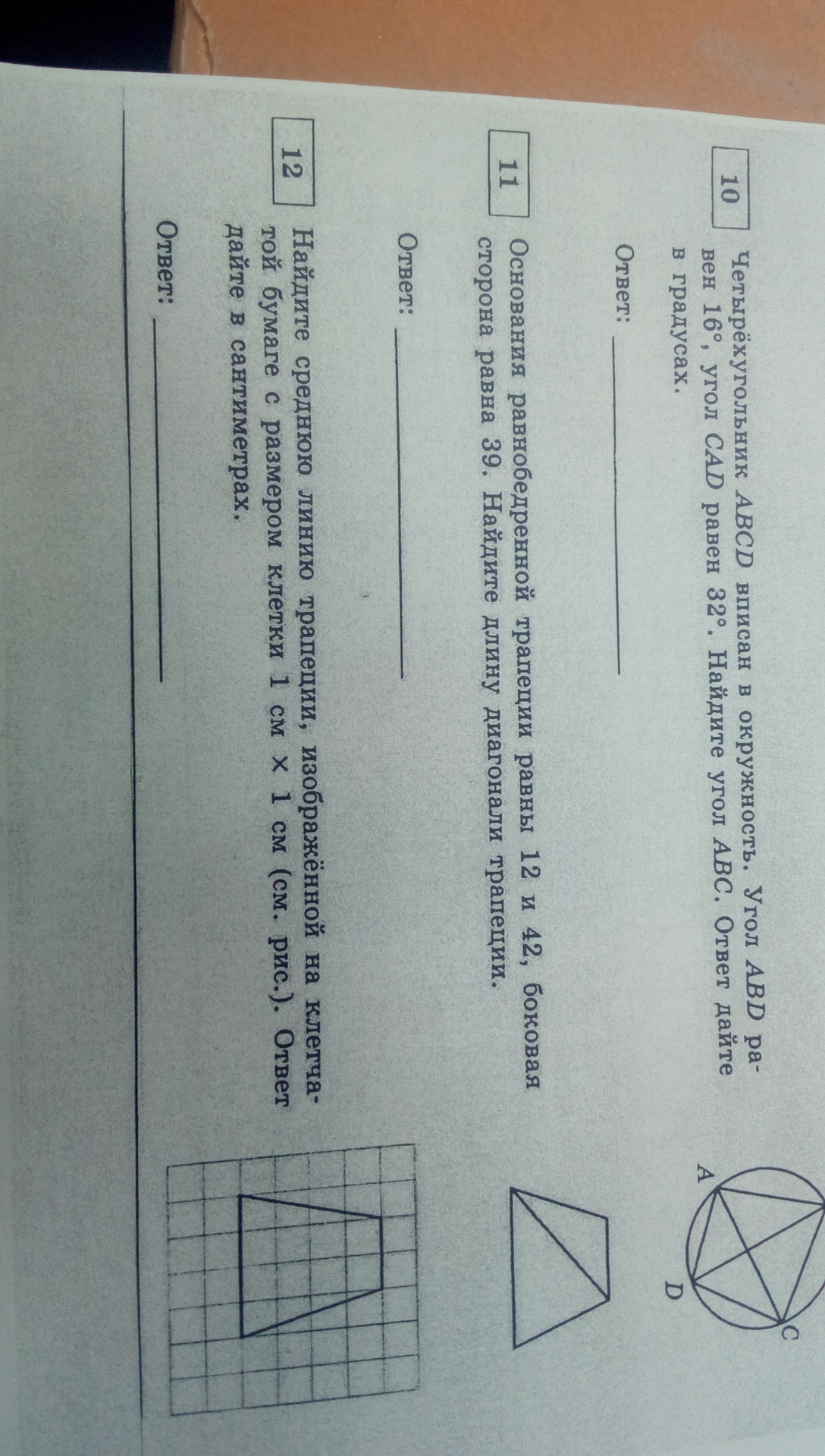 номер 11 складывай все стороны и дели на 2 т.к диогональ делит трапецию на 2 равных треугольника и ответ: 66
