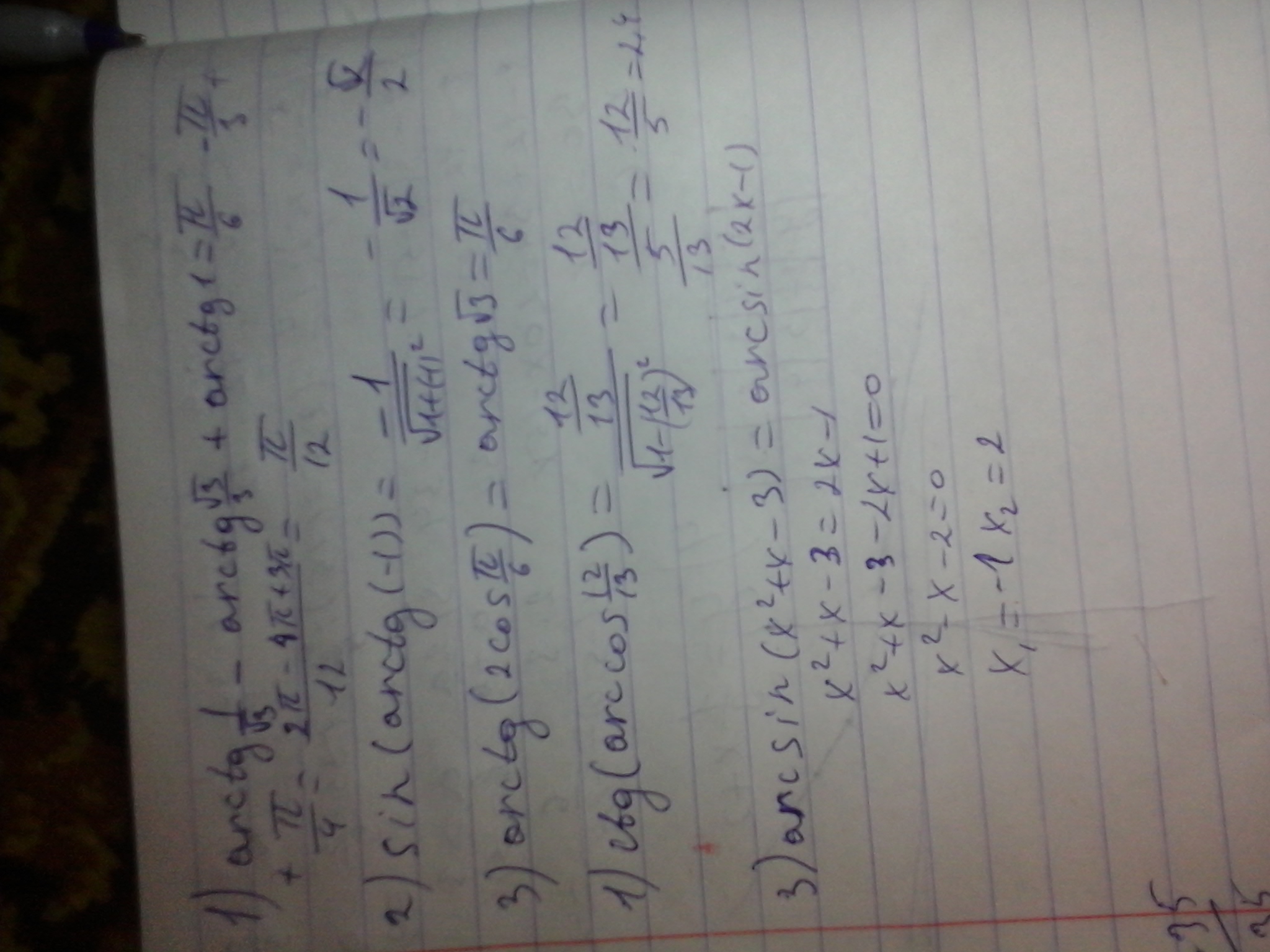 ctg(arccos12/13)=12/13:√(1-144/169)=12/13:√(25/169)=12/13:5/13=
