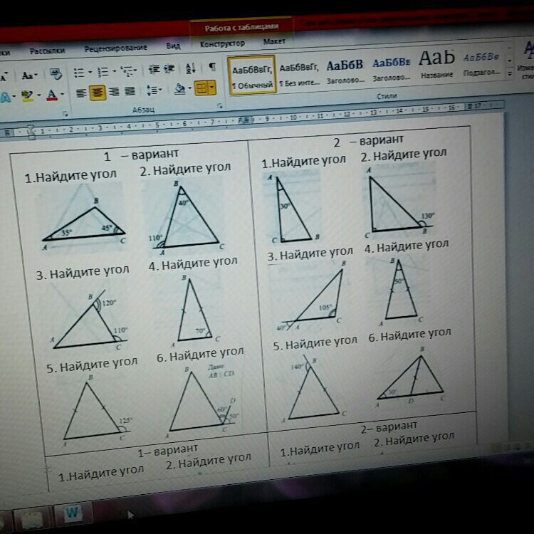 1.) сумма углов=180° значит 180-45-35=100°