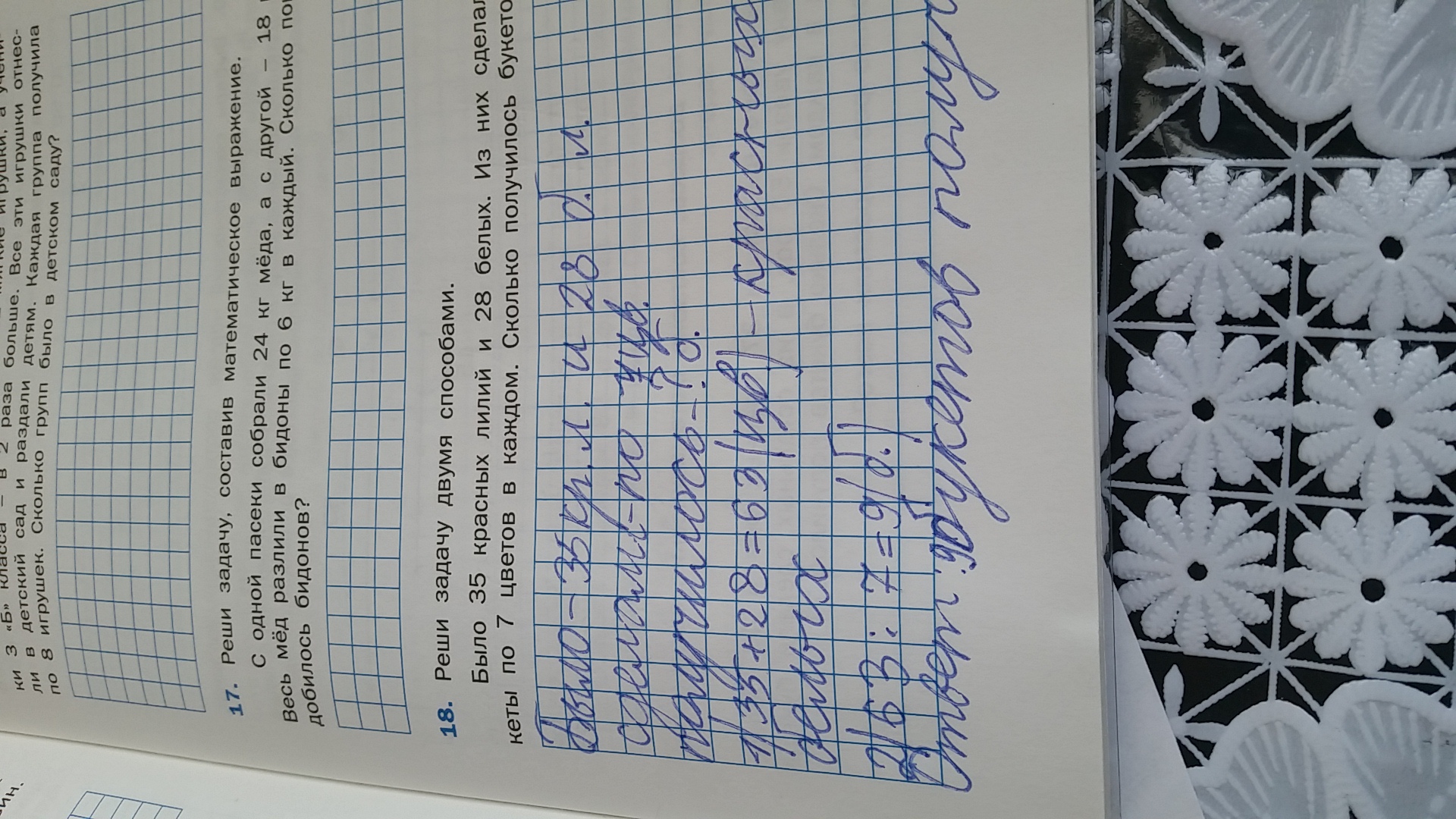 1) (35÷7)+(28÷7)=9(букетов получилось)