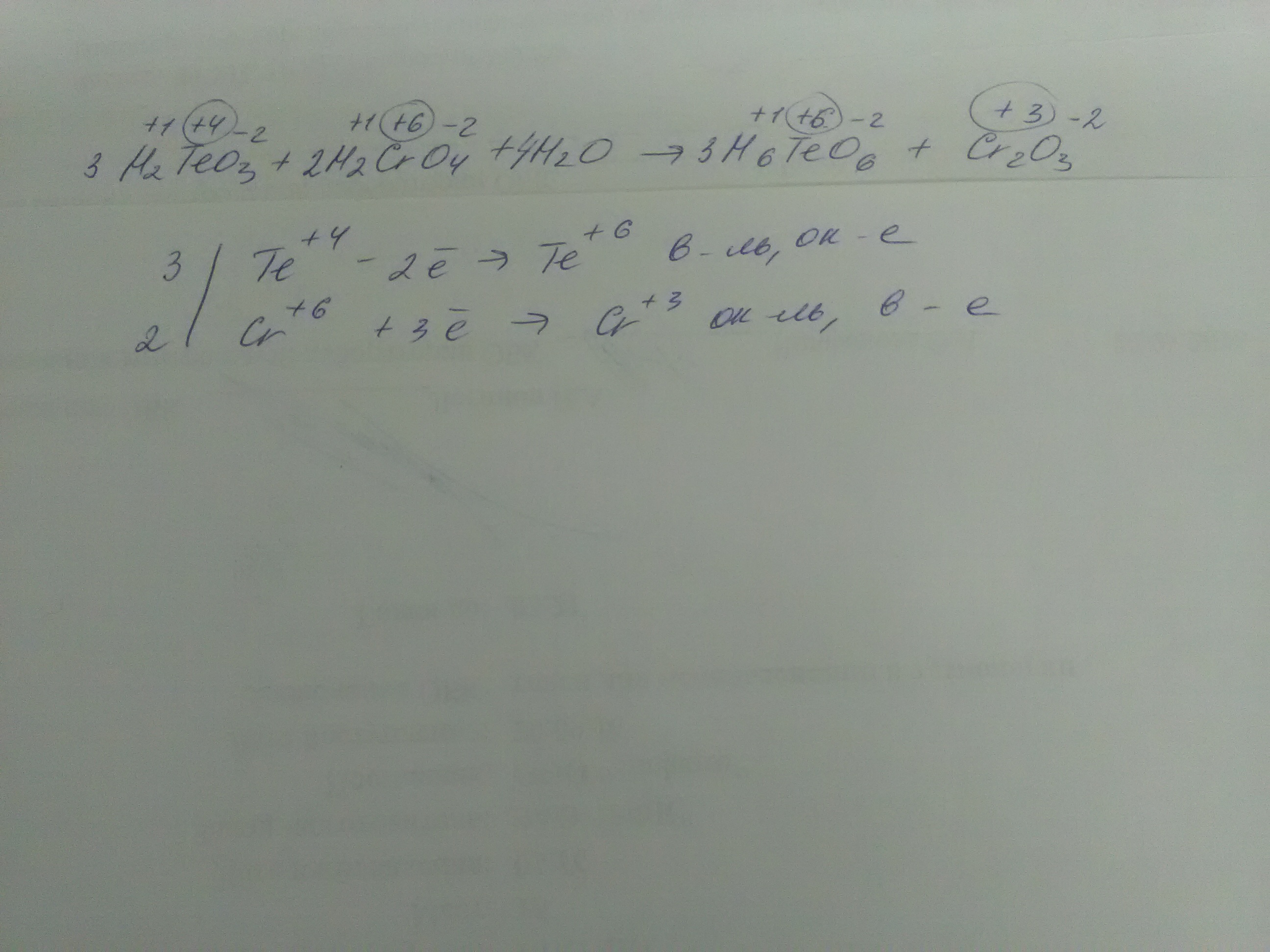 H2TeO3 + H2CrO4 + H2O → H6TeO6 + Cr2O3