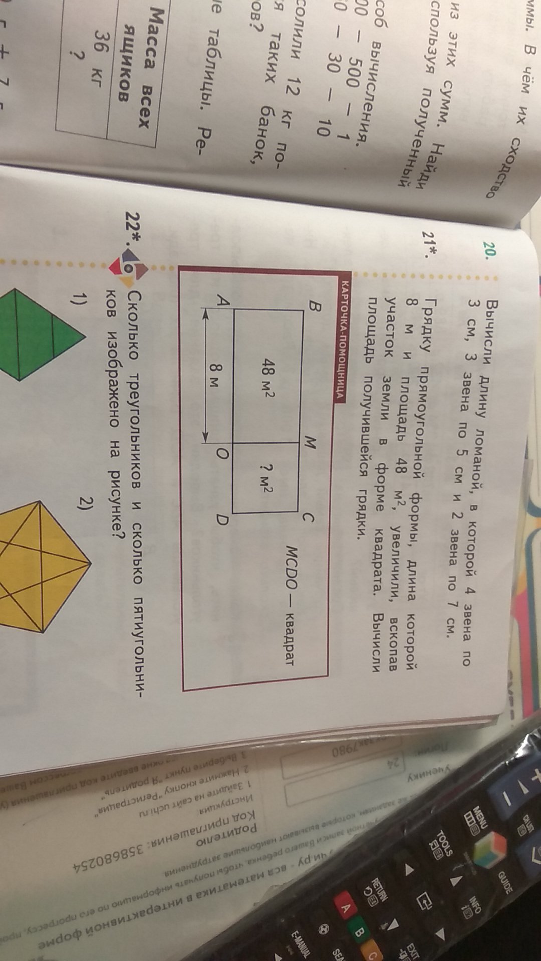 Если думать логически , то чтобы найти площадь надо умножить ширину на длину ,значит 8*x=48 - получиться 6 , то есть ширина грядки в изначальном виде была 6 см , находим площадь-6*8=24- Площадь старой грядки