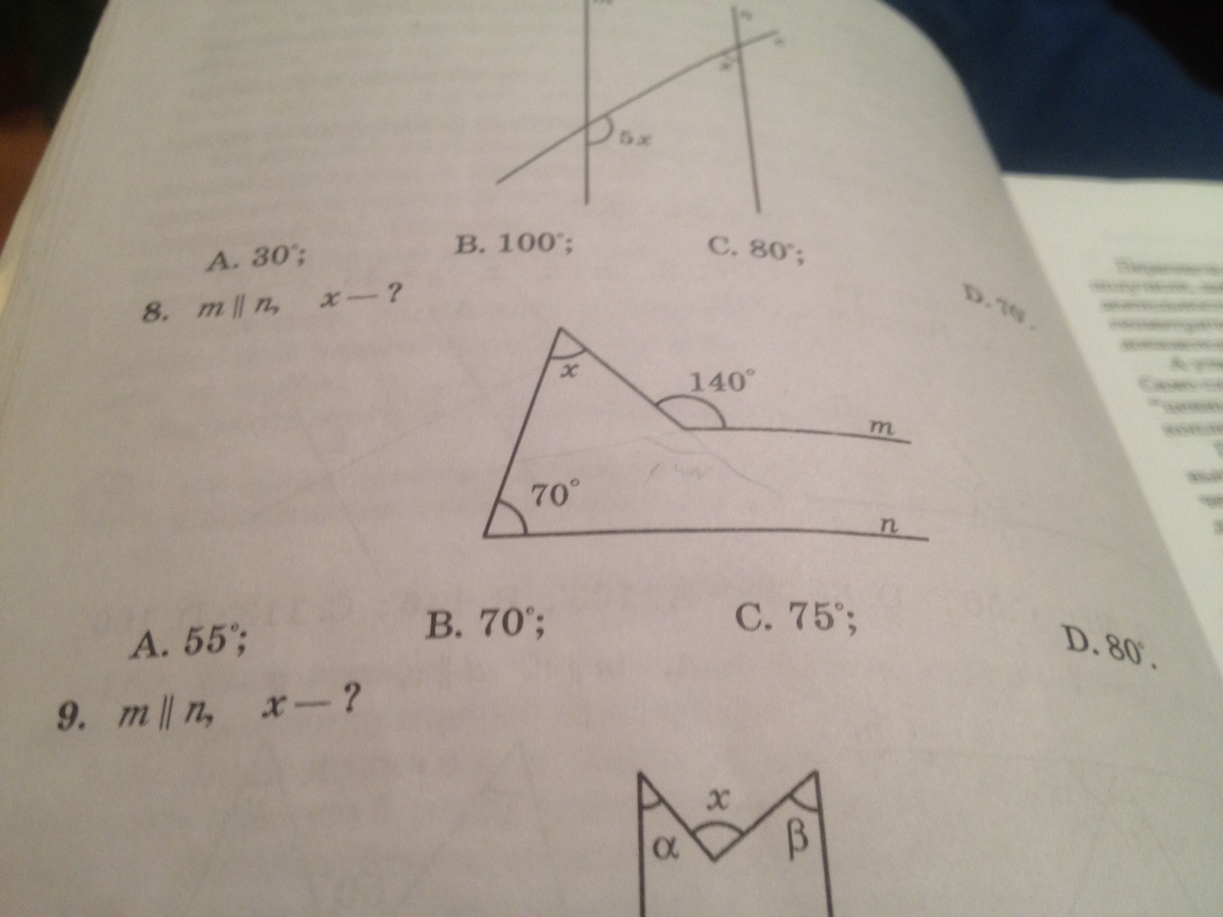 продолжи отрезок М и у тебя получится треугольник , в по сторонам треугольника найдешь угол.