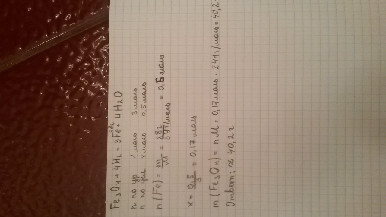 При взаимодействии Fe3O4+4H2=3Fe+4H2O образовалась 28г Fe.Сколько оксида железа было взято для данной реакции?