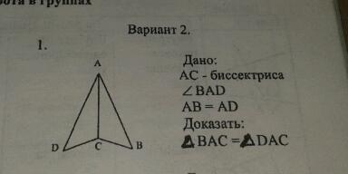Так как ас биссектриса угла бад и делит угол пополам то углы бас и дас равны соответственно эти треугольники равны