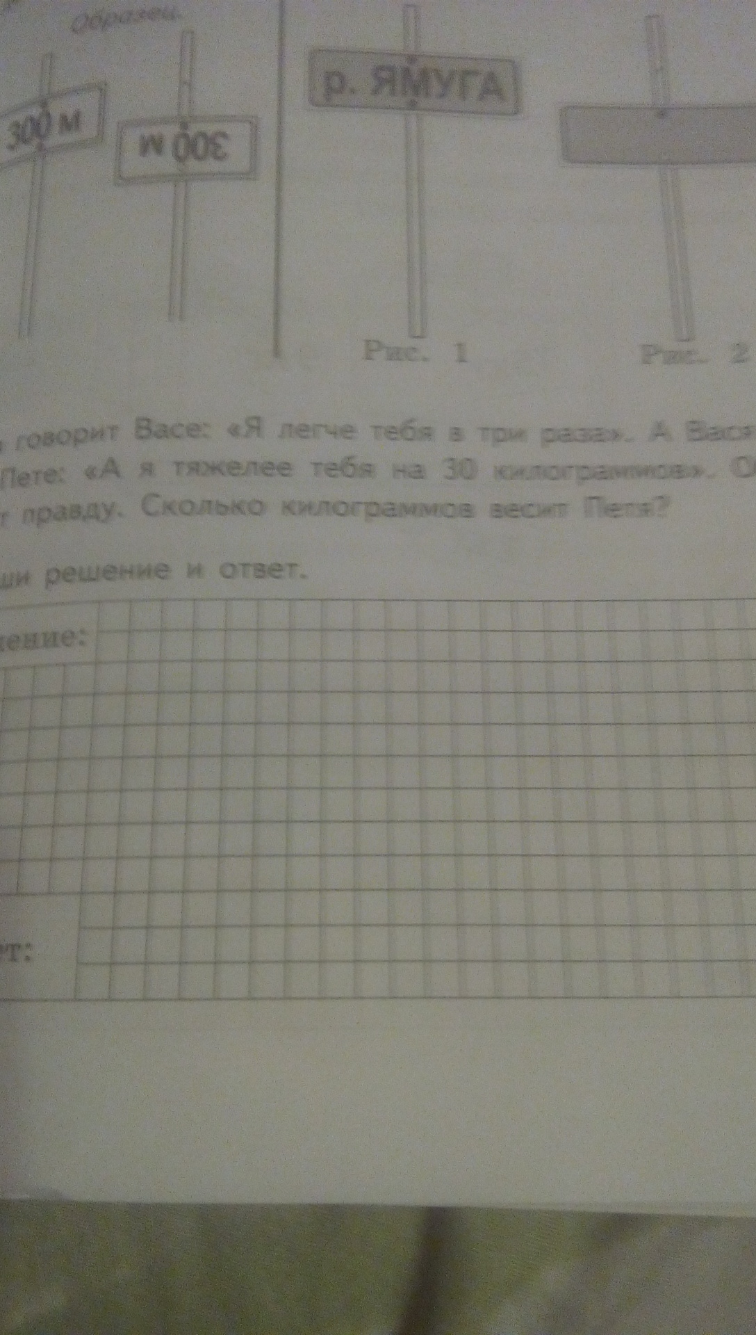 а я тебя тяжелее на 30 килограмм. оба говорят правду Сколько килограмм весит Петя?