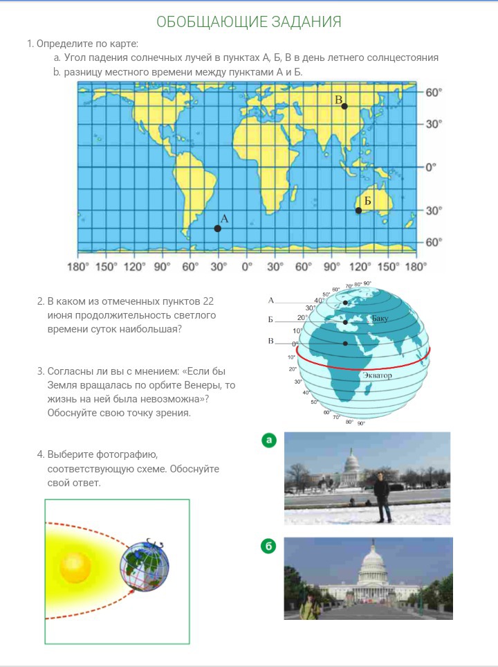 3)б ( так как благодаря тому, что Земля вращается во круг солнца и вокруг своей оси, на Земле есть времена года и день и ночь. Как известно, что Земля вращается во круг солнца за 365 дней, а вокруг своей оси за 24 часа, по орбите в космосе Земля медлено вращается, поворачиваясь к солнцу - так и получается лето,а на не освещенном участке-зима. На рисунке показано то, что Земля расположена к солнцу и именно поэтому на этом участке лето)