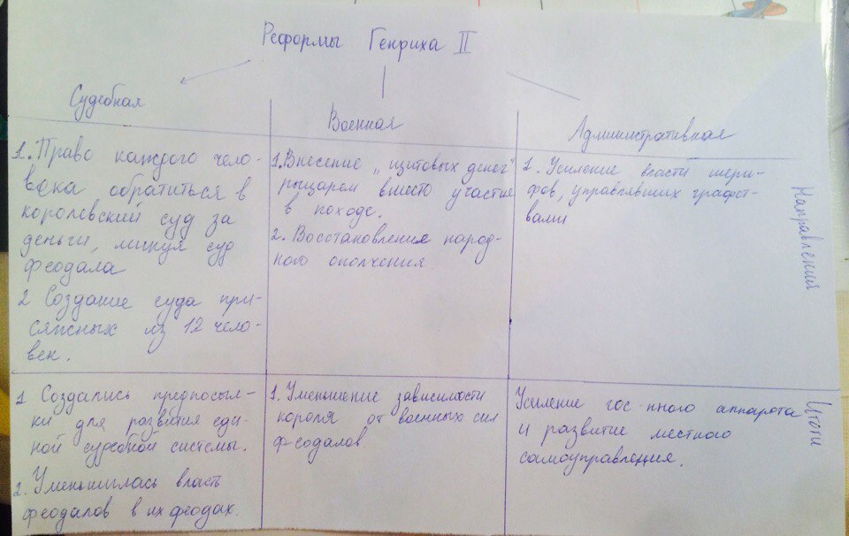 судебная, военная, административно-управленческая, финансовая реформы, осуществленные в Англии в 1154-1189 гг. Направлены на укрепление авторитета королевской власти и ослабление позиций крупных светских и духовных феодалов. Главным в судебной реформе было введение суда присяжных, института разъездных судей. Каждому свободному гражданину король предоставил право обращаться в королевский суд, минуя феодальный (суд баронов), чем давал известную защиту от произвола крупных феодалов. По военной реформе Генрих II освободил часть рыцарей от военной службы взамен уплаты ими военного или щитового налога, что было первой попыткой завести постоянное войско
