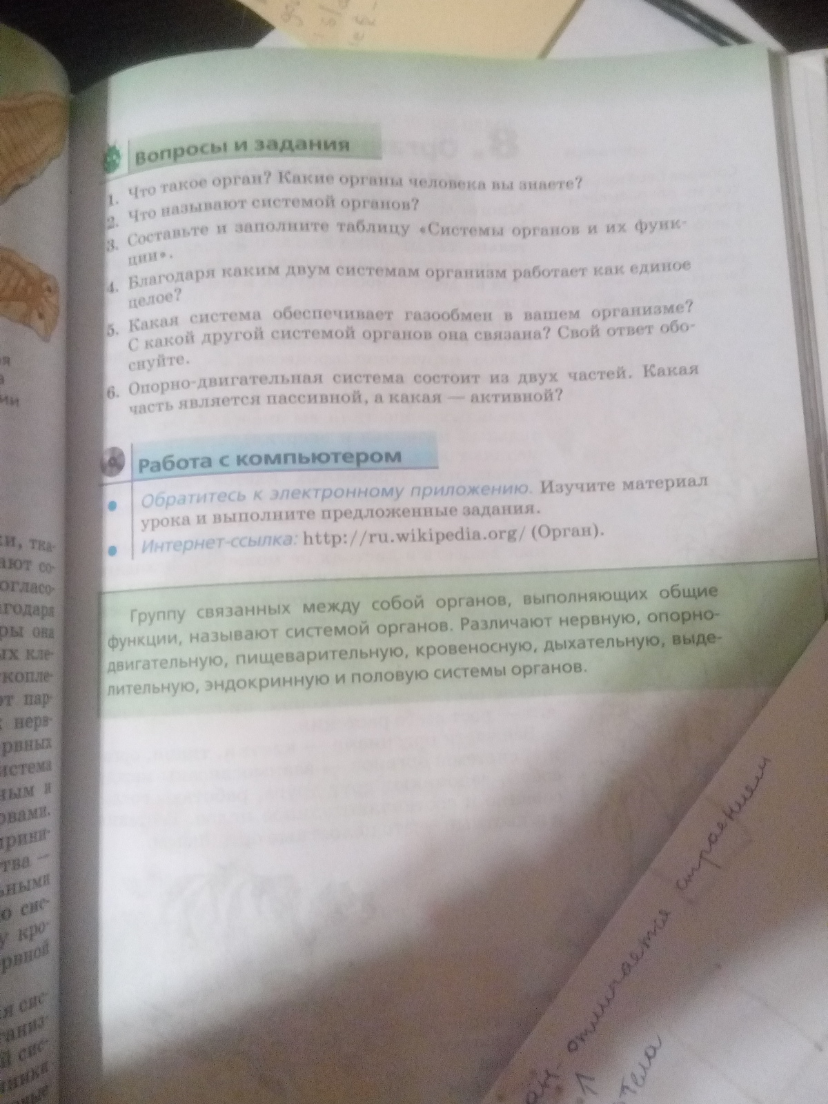 1.частина тела определенной формы, состоящий из одинаковых групп тканей и выполняет определенные функции.-сердце-мозгы-Почки-легкие-желудок-кишечник2. система органов совокупность органов одного происхождения, имеют общие черты строения, связанные анатомически и топографически, а также выполняют одинаковую функцию.дыхательный система --------- обеспечивает газообмен и гомеостазсердечная сосудистая--------------- Осуществляет транспорт крови по всему организму