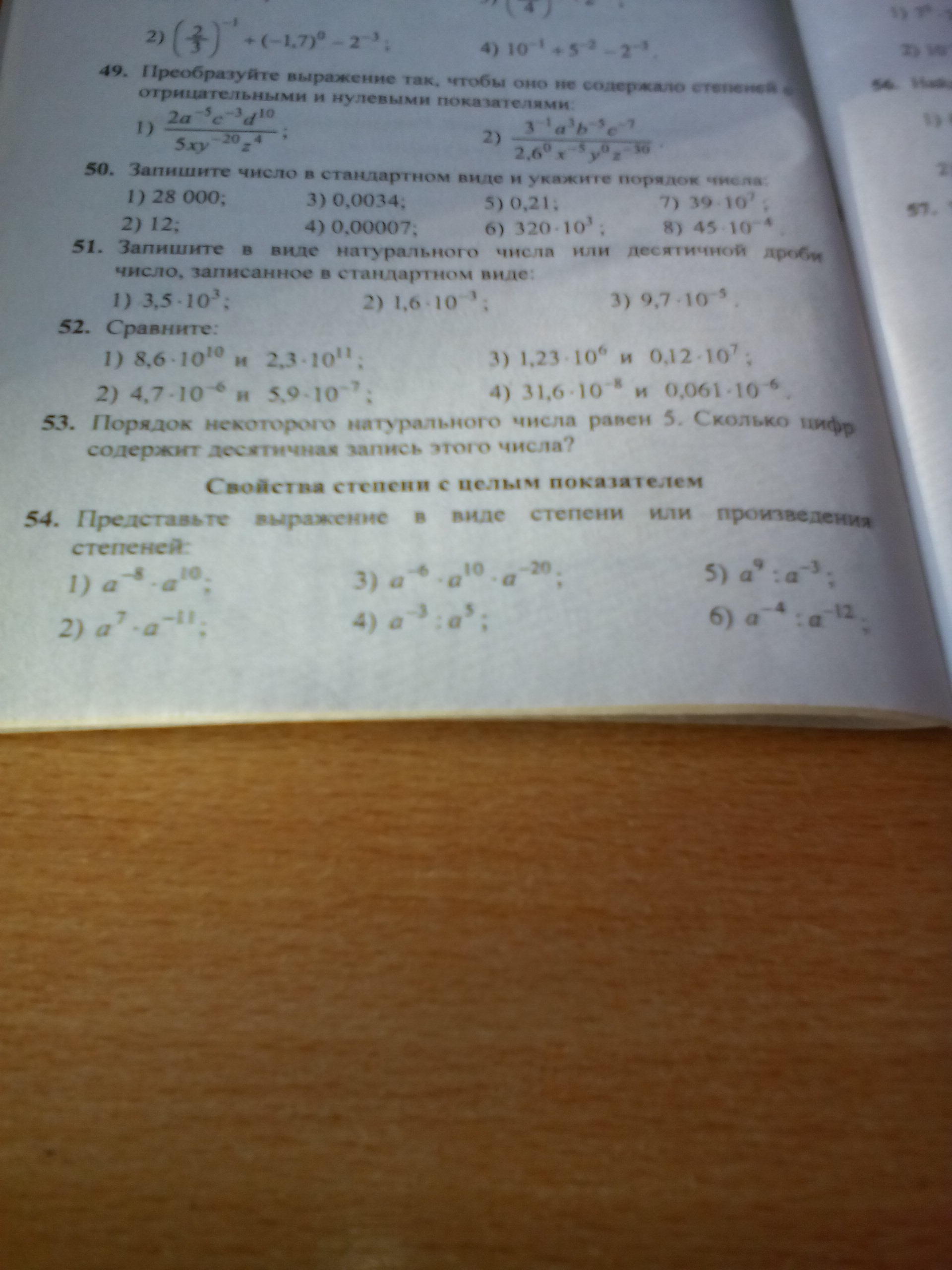 Степени делятся- показатели вычитаются(-3-5= -8)