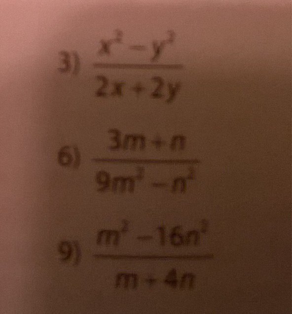 9) (m-4n)(m+4n)/m+4n=m-4n