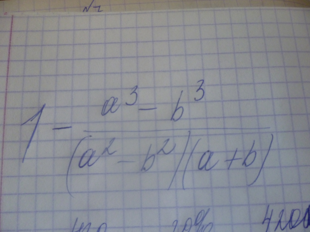 1-(a^3-b^3)/((a^2-b^2)*(a+b))=ab/(b^2+2ab+a^2)=ab/(b+a)^2 (это на множители, на всякий случай)