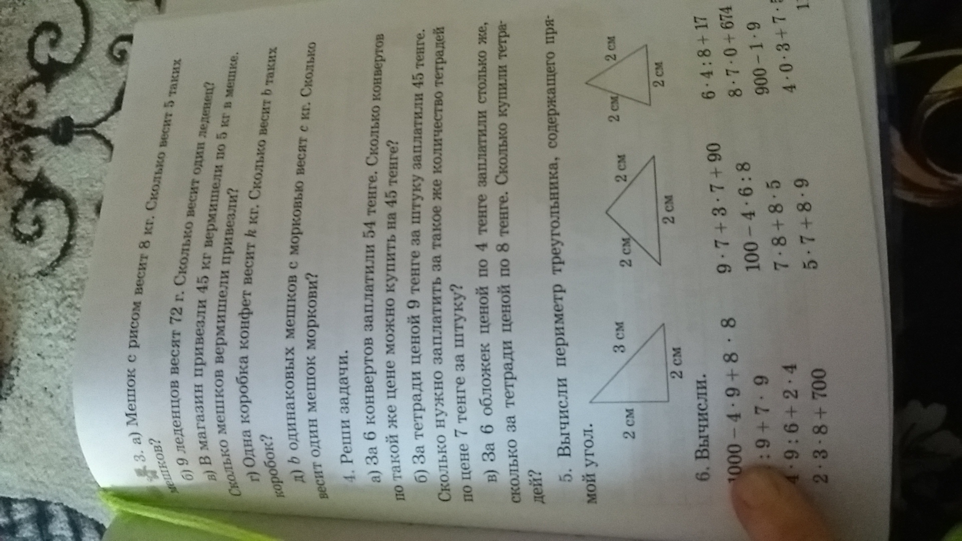 так. б) для начала узнаем сколько тетрадей купили за 9 т. 1)45:9=5(шт). а теперь узнаем сколько надо заплатит за 7 тетрадей по 5 т 2)7*5=35