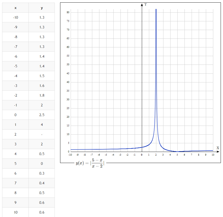 В точке х=2 функция не имеет значение, поэтому график функции приближается бесконечно близко к ней слева и справа.