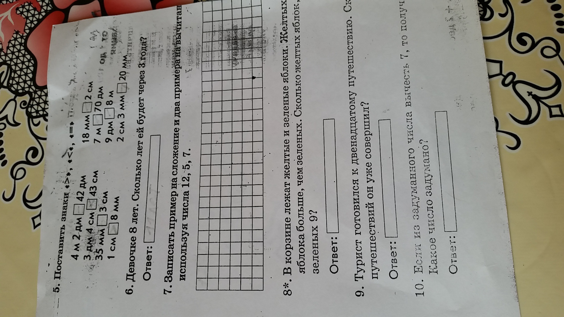 7)сложение 12+5 =17 5+7=12 вычитание 7-5=2 12-7=5