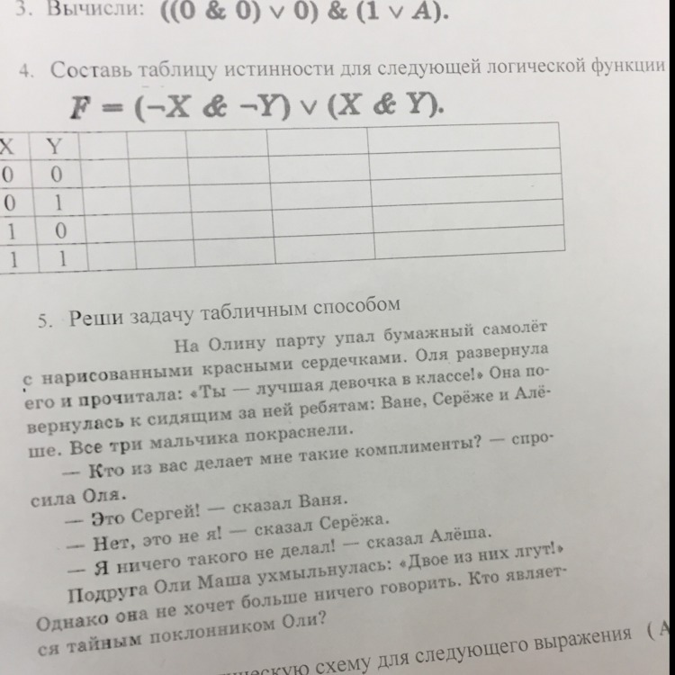 3. Если правду говорит Сергей, Иван и Алексей лгут. Иван лжет, что поклонником является Сергей, Сергей говорит правду, что ничего такого не делал, а Алексей лжет, что не имеет понятия, о чем идет речь. Соответственно поклонником является Алексей.