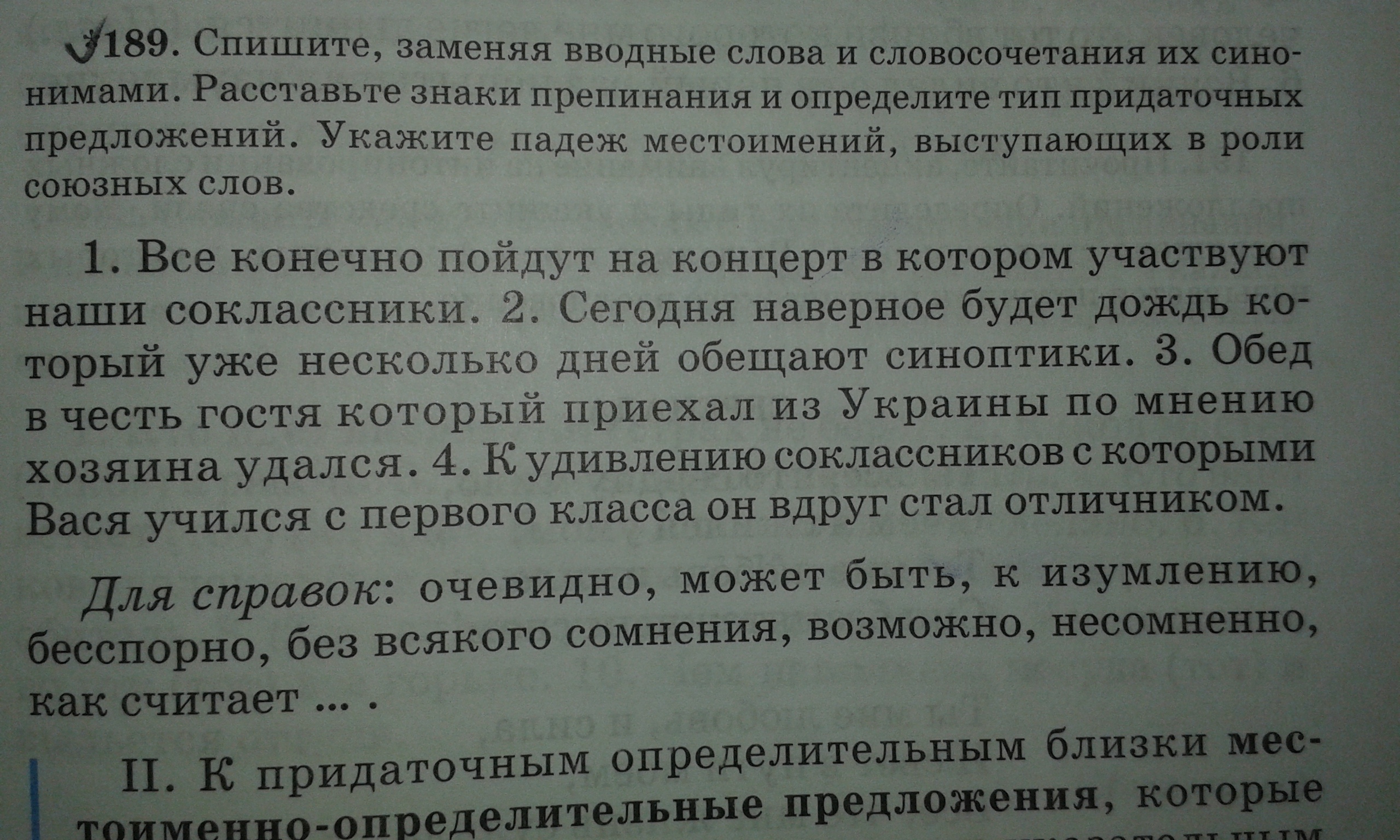 ПОМОГИТЕ СРОЧНО!!! Спишите,заменяя вводные слова и словосочетания их синонимами.Расставьте знаки припенания и определите тип придаточных предложений.Укажите падеж местоимений,выступающих в роли союзных слов.
