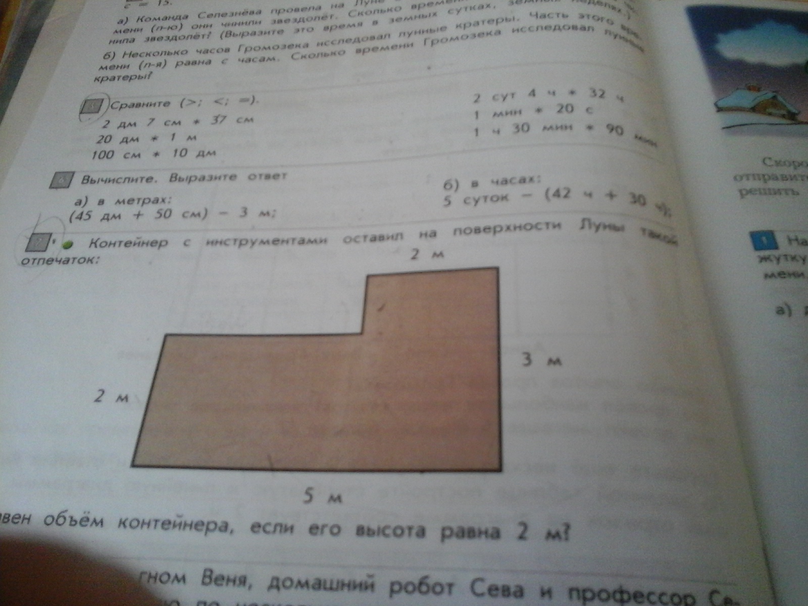 контейнер с инструментами оставил на поверхности луны такой отпечаток: чему равен объём контейнера если его высота равна 2 м